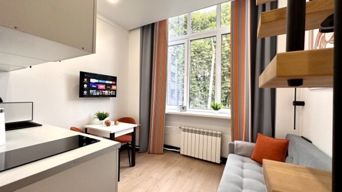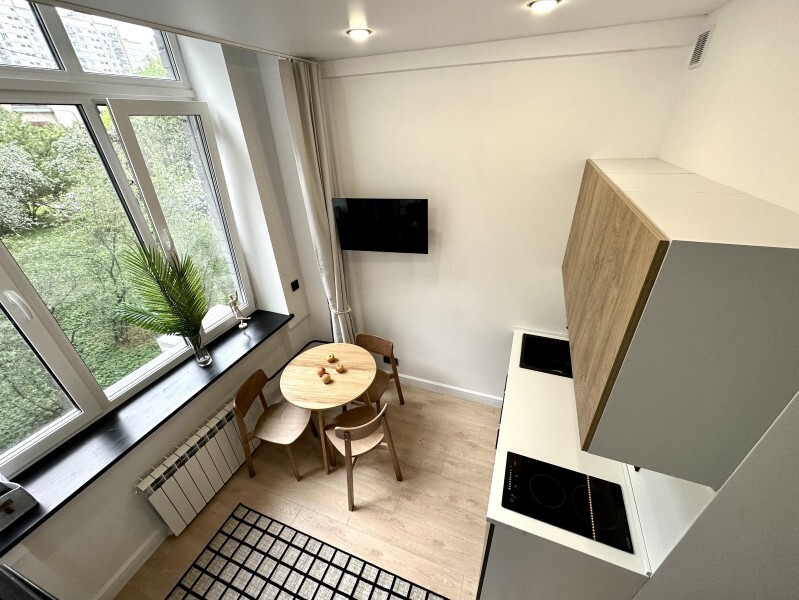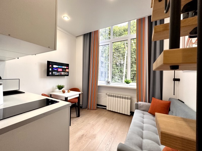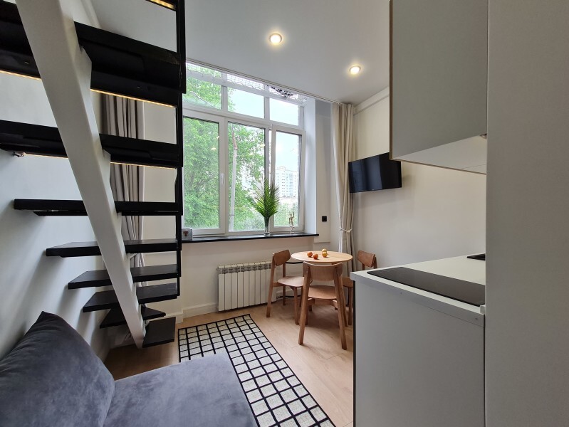 Оригинальный вариант жилья с двухуровневым расположением. В апартаментах 6-ти метровые французские окна в два этажа.