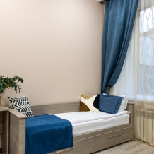 - Дополнительное спальное место - раскладная кровать, предоставляется по запросу и при наличии возможности за дополнительную плату: с 01.04 по 30.09 и с 29.12 по 08.01 размер доплаты составляет 1500 руб. в сутки, в остальные даты дополнительная кровать предоставляется бесплатно.