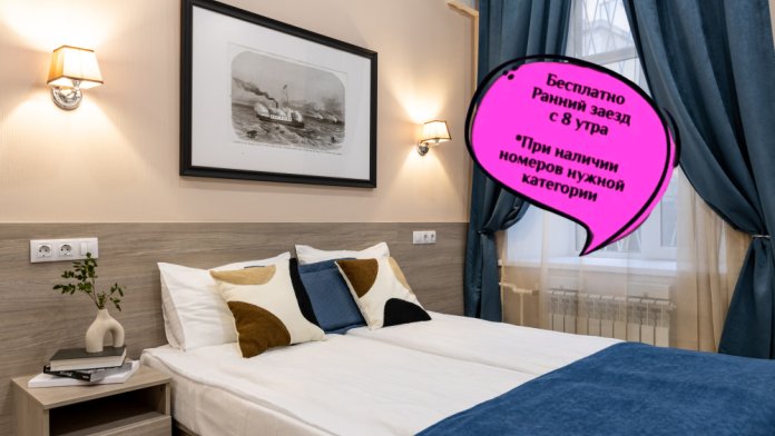 - В отеле возможен гарантированный ранний заезд, стоимость составляет 100% оплаты предыдущих суток. Услуга негарантированного раннего заезда предоставляется бесплатно с 08:00 при наличии свободных номеров.