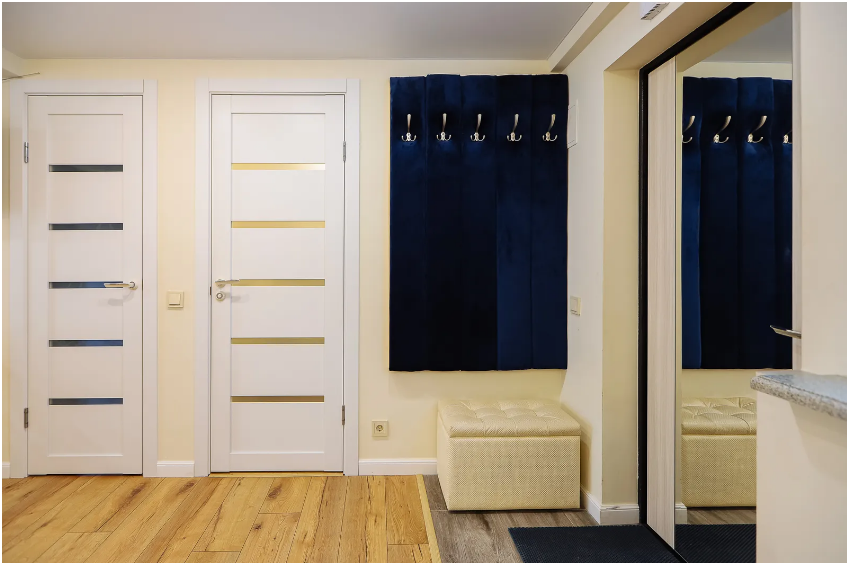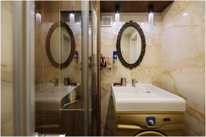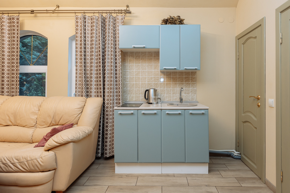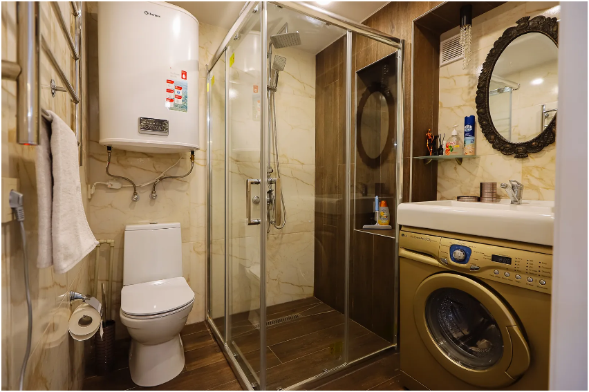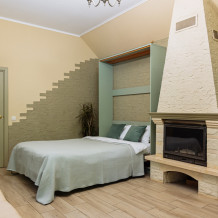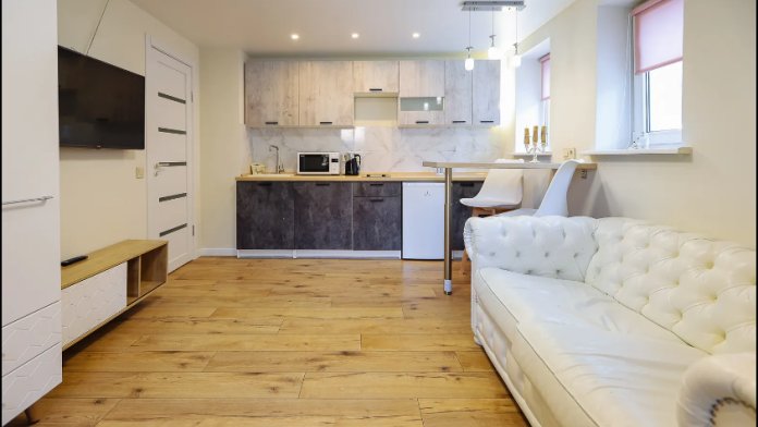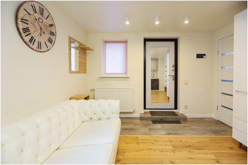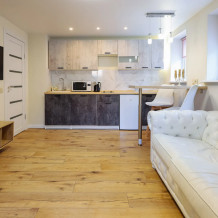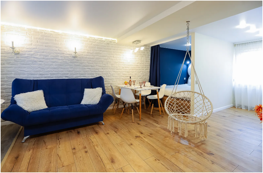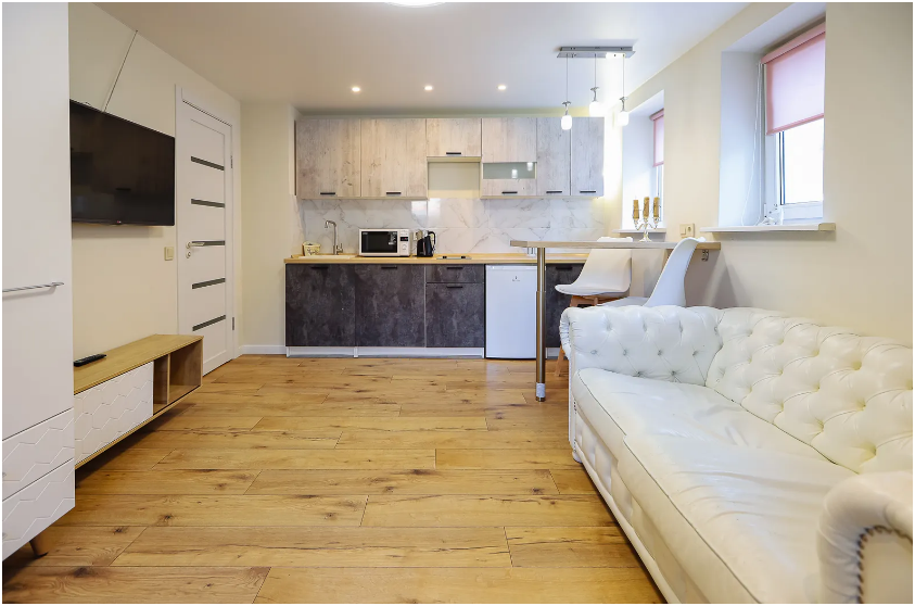 В студии сделан новый дизайнерский ремонт, есть шумоизоляция: телевизор, фен, утюг, удобный большой ортопедический диван и кровать (160/200), современная кухня со всем необходимым, микроволновая печь, санузел с душевой, средства гигиены, стиральная машина, постельное белье, полотенца, продуманная система освещения, гардеробная.