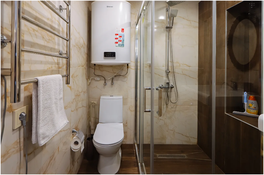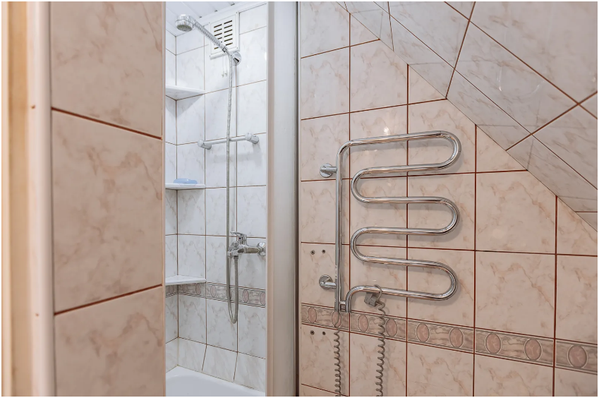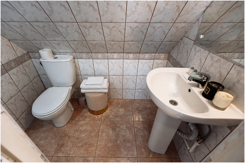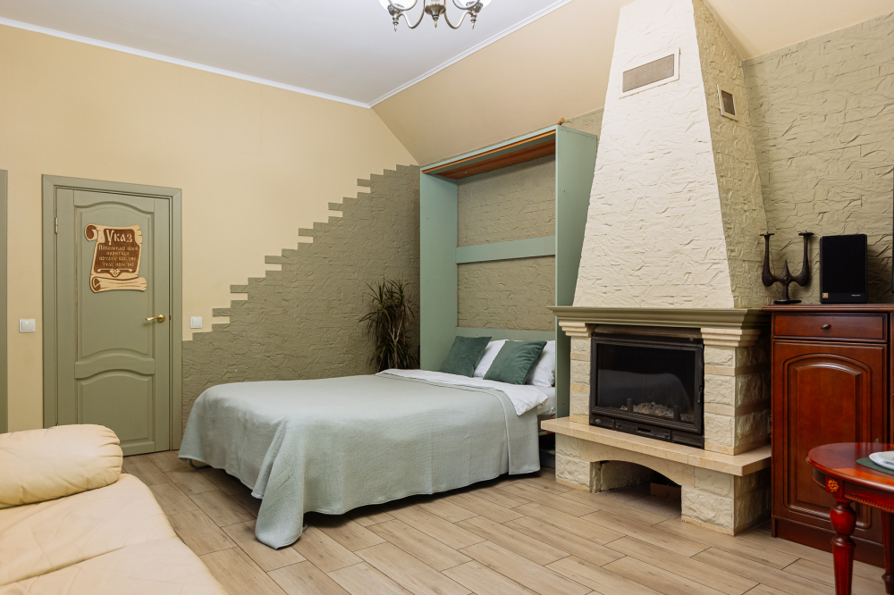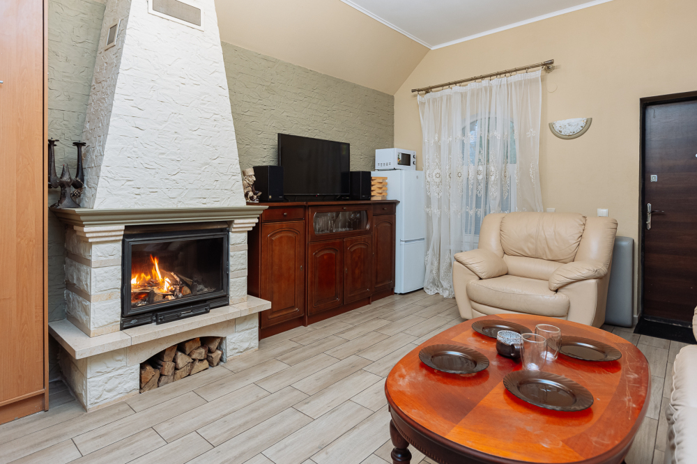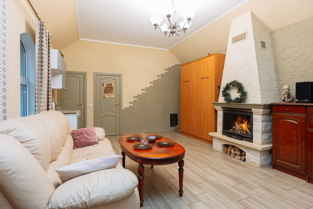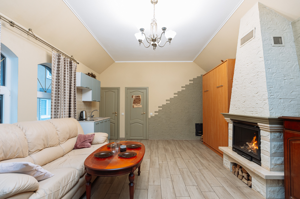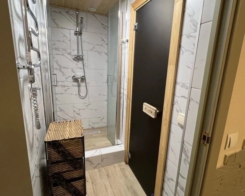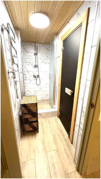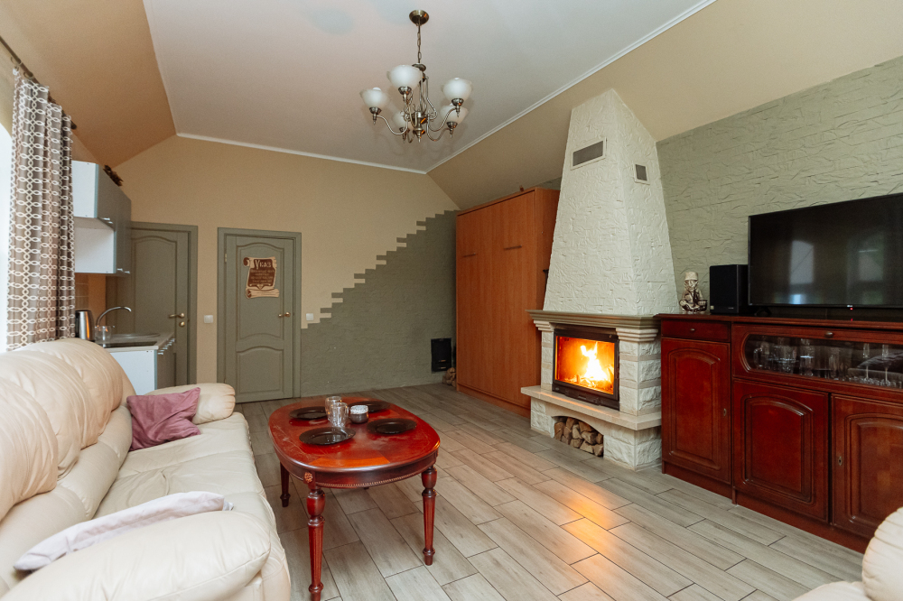Есть камин, баня на дровах (ее топим за отдельную плату), душевая кабина, санузел.