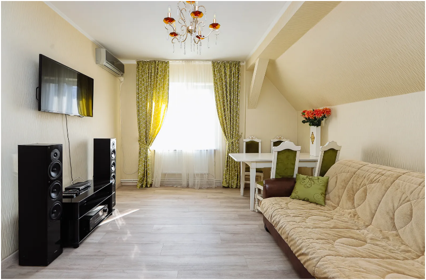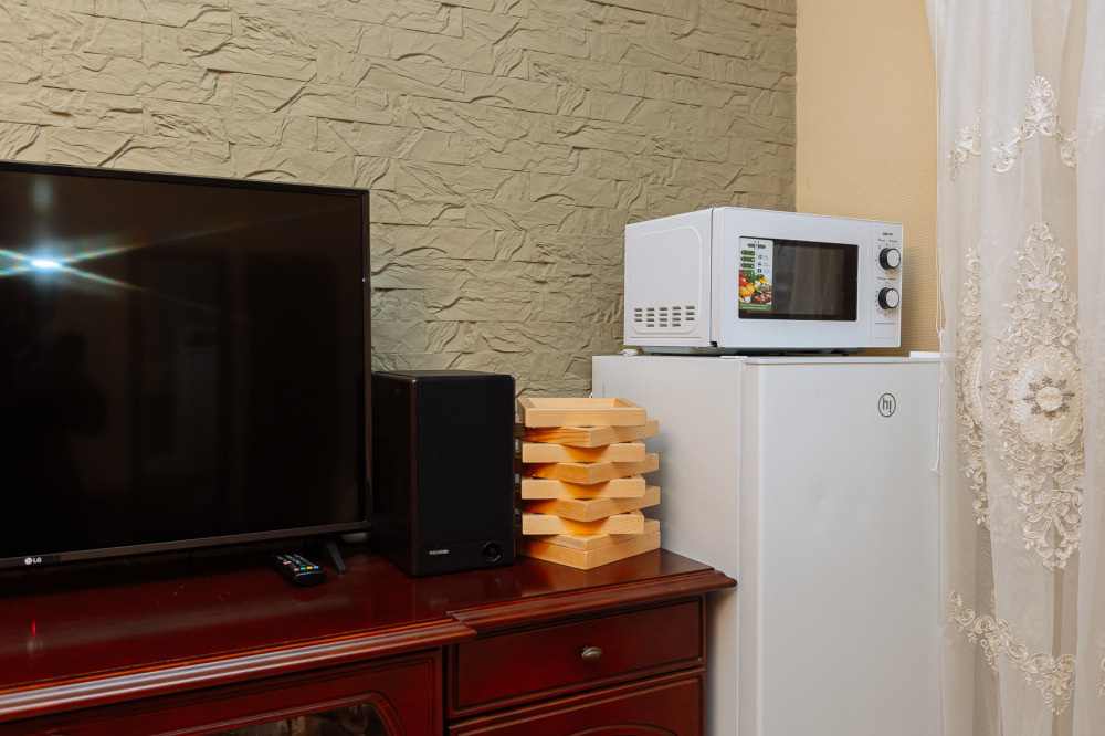 Все квартиры оборудованы современной техникой, посудой, постельным бельем, полотенцами, Wi-Fi. Есть возможность запросить за дополнительную стоимость раскладушку в номер, дополнительное постельное белье, одеяла, подушки.