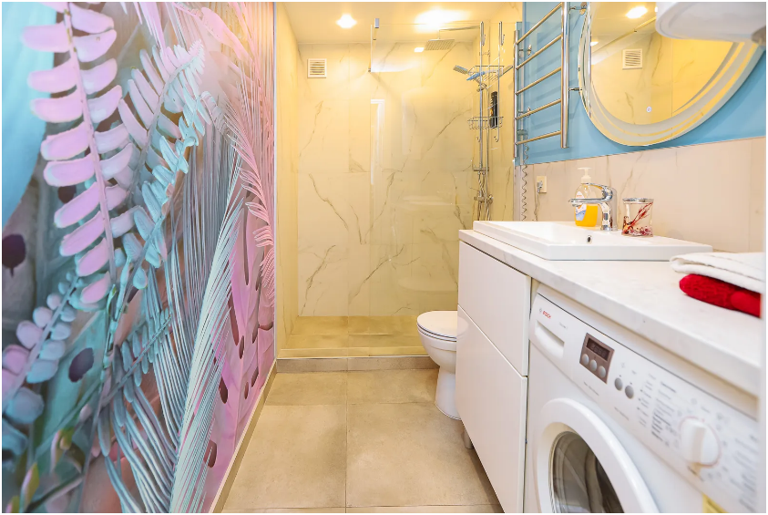 В квартире имеется: телевизор, фен, утюг, удобный большой ортопедический диван, спальня с большой кроватью и шторами блэкаут, современная кухня со всем необходимым, микроволновая печь, душевая кабина, сан узел с полотенцами и средствами гигиены, постельное белье, полотенца, стиральная машина, продуманная система освещения.
