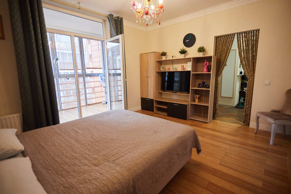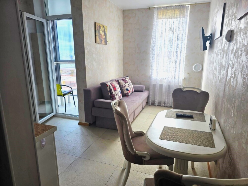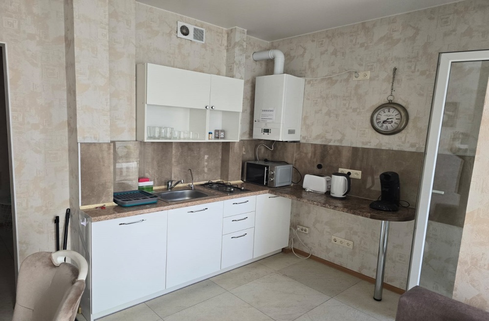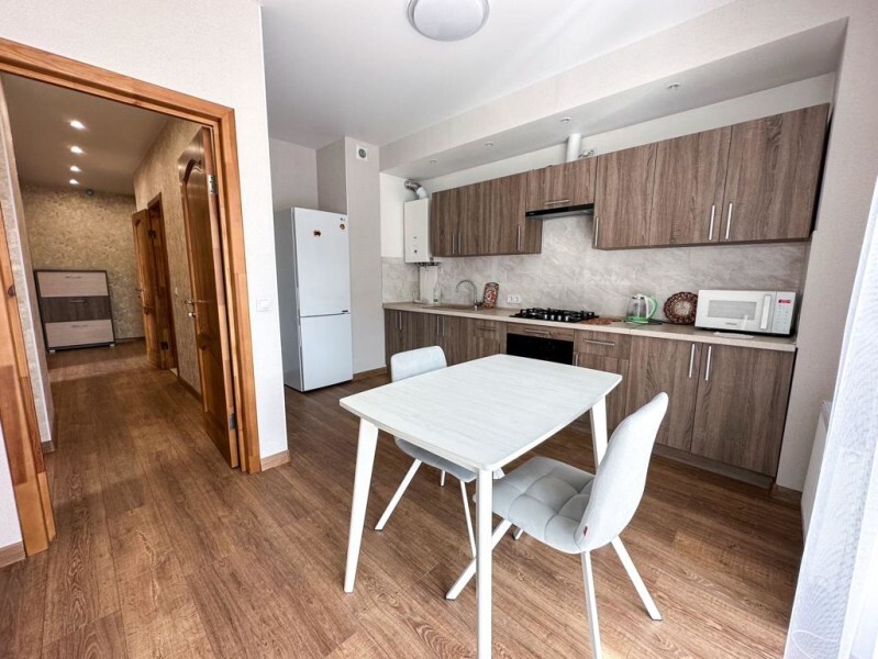 Однокомнатные апартаменты, находящиеся на 8 этаже, из которой открывается прекрасный вид. Вся квартира обставлена новой мебелью и современной техникой. Апартаменты вмещают до 2-х человек. Общая площадь составляет 52м2