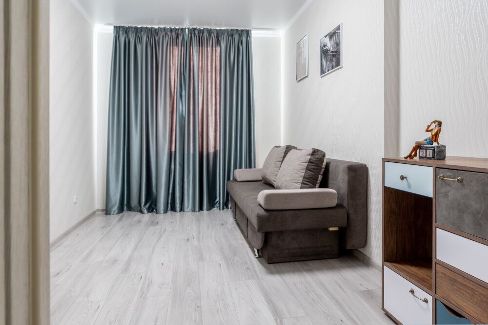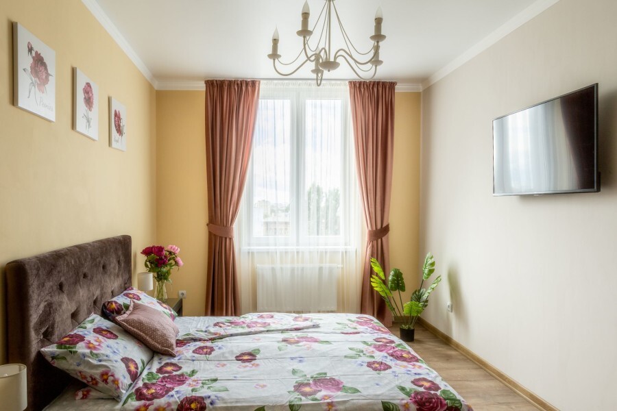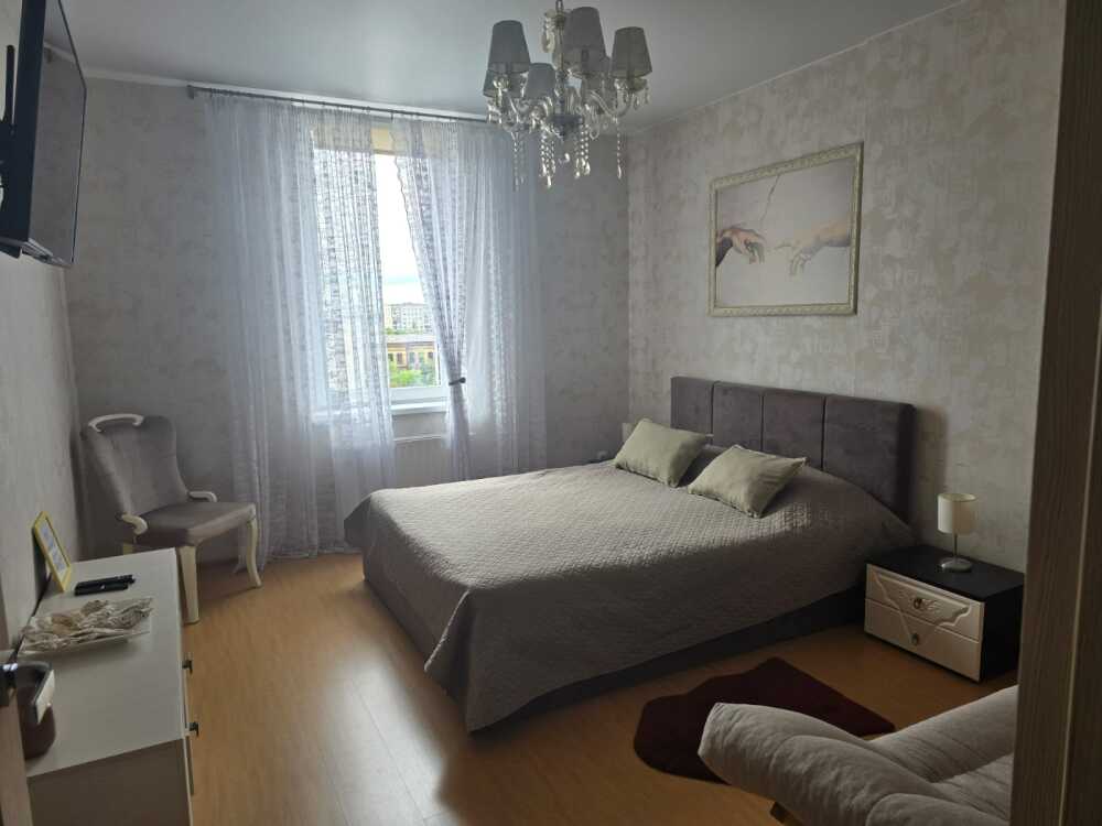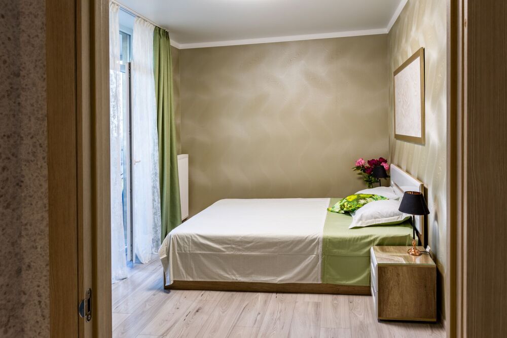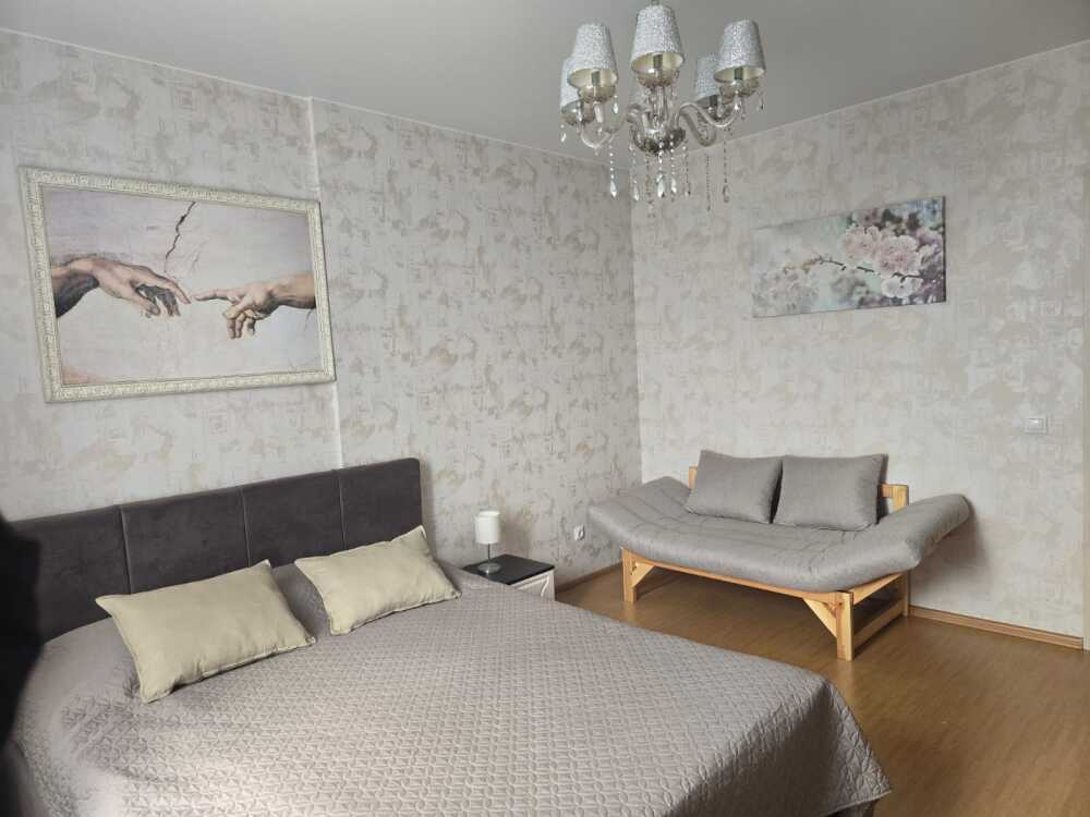 Однокомнатные Апартаменты, находящиеся на 8 этаже, из которых открывается прекрасный вид на город и озеро. Вся квартира обставлена новой мебелью и современной техникой. Апартаменты вмещают до 4-х человек. Общая площадь составляет 44м2.
