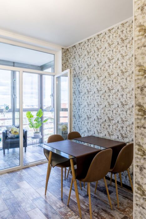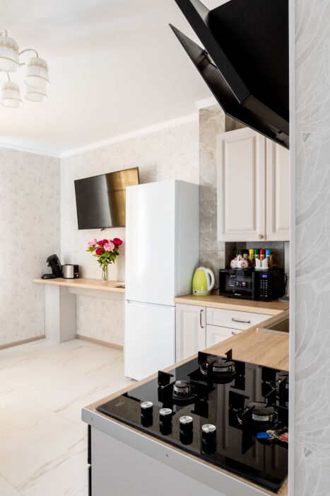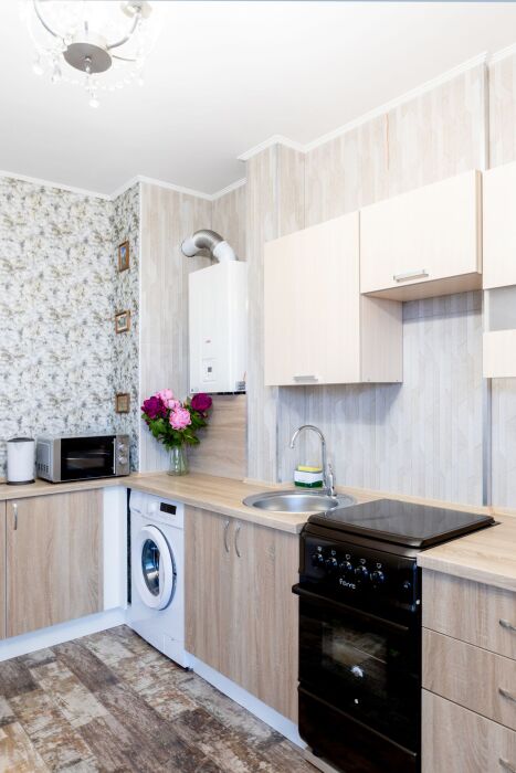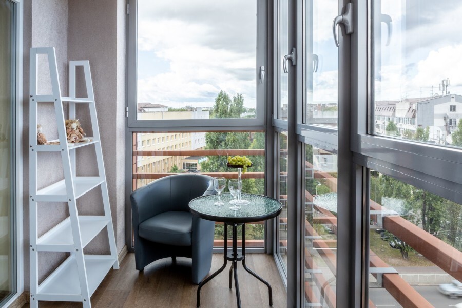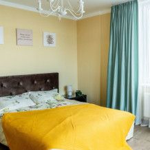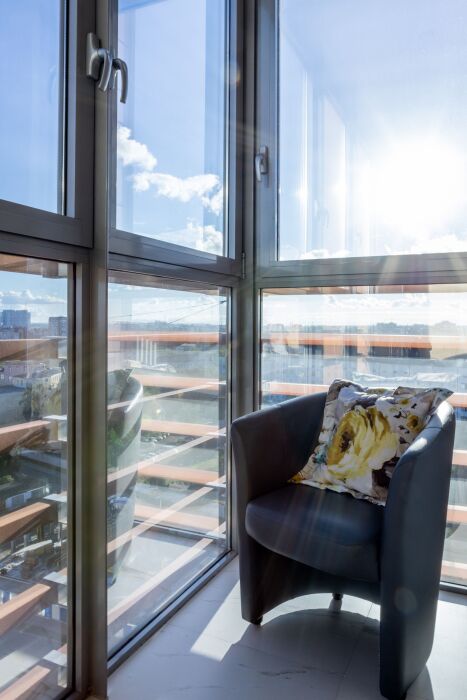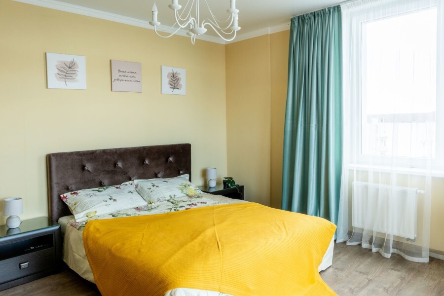 Двухкомнатные апартаменты, находящиеся на 15 этаже, имеют прекрасный вид на город Калининград. Также имеется большой балкон и кухня с современной техникой. Апартаменты вмещают до 5-ти человек. Общая площадь составляет 63м2.