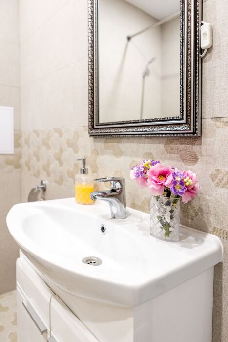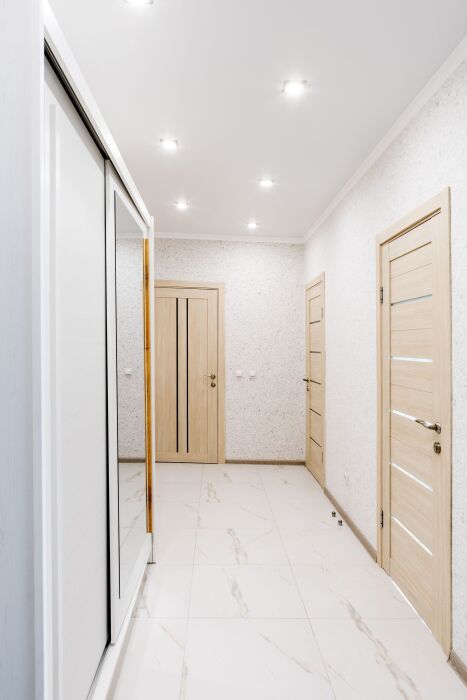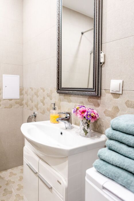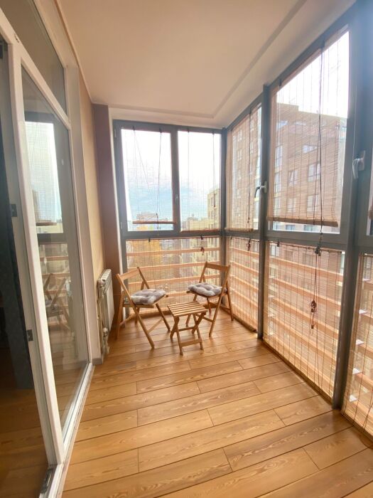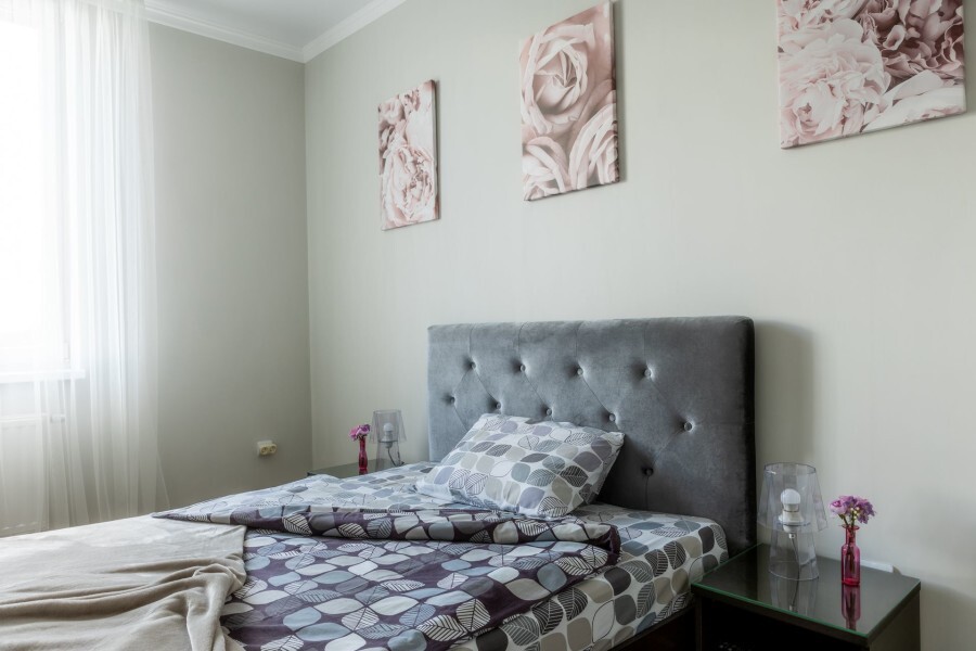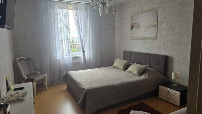 Трёхкомнатные апартаменты, находящиеся на 12 этаже, имеют 2 балкона, из которых открывается прекрасный вид на город. Также 3 отдельные комнаты. Вся квартира обставлена новой техникой и мебелью. Апартаменты вмещают до 6-ти человек.Общая площадь составляет 86м2.