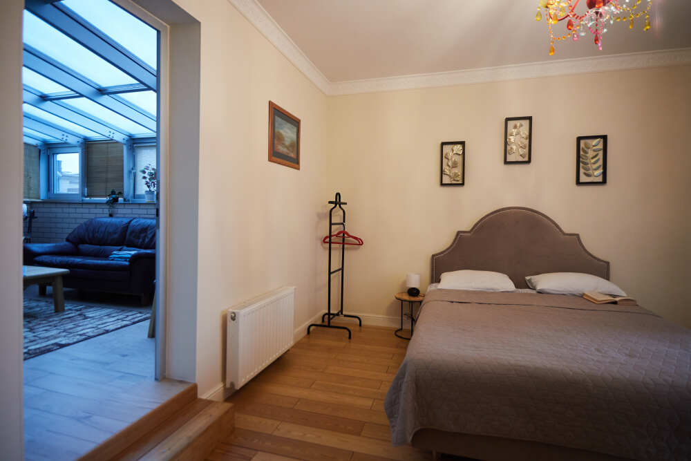 Двухкомнатные апартаменты, находящиеся на 4 этаже, имеют прекрасный вид на улицу и внутренний дворик. Также имеется большой балкон и кухня с современной техникой. Апартаменты вмещают до 4-ех человек.