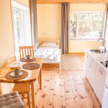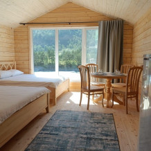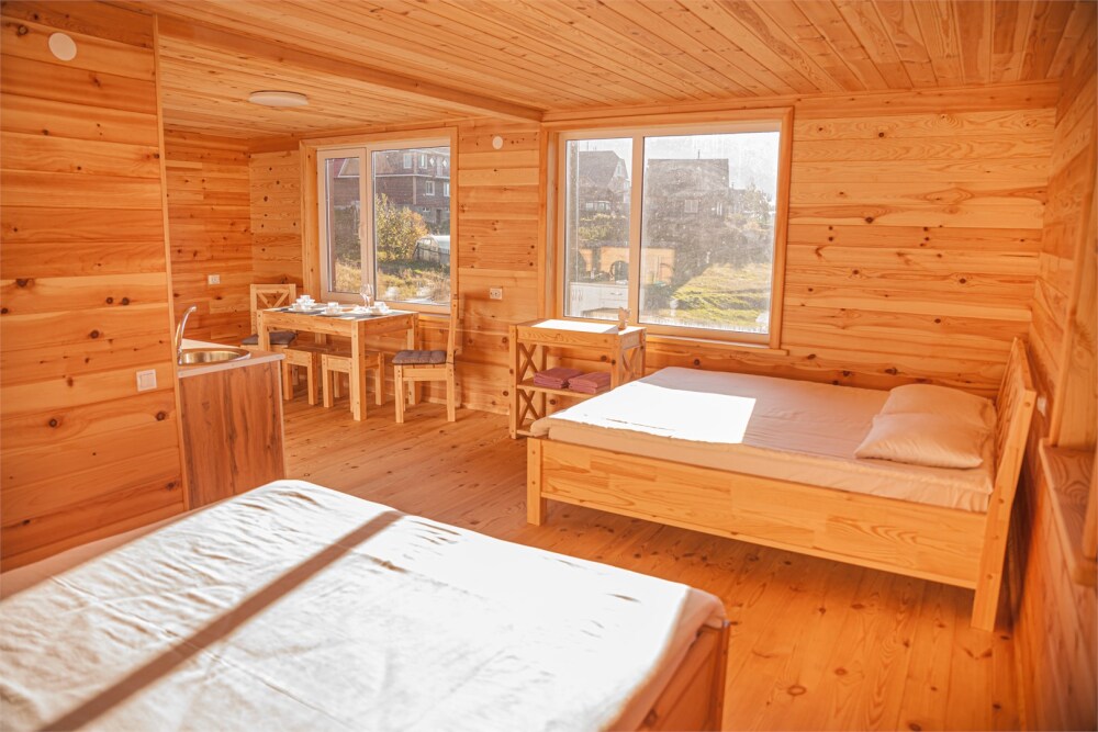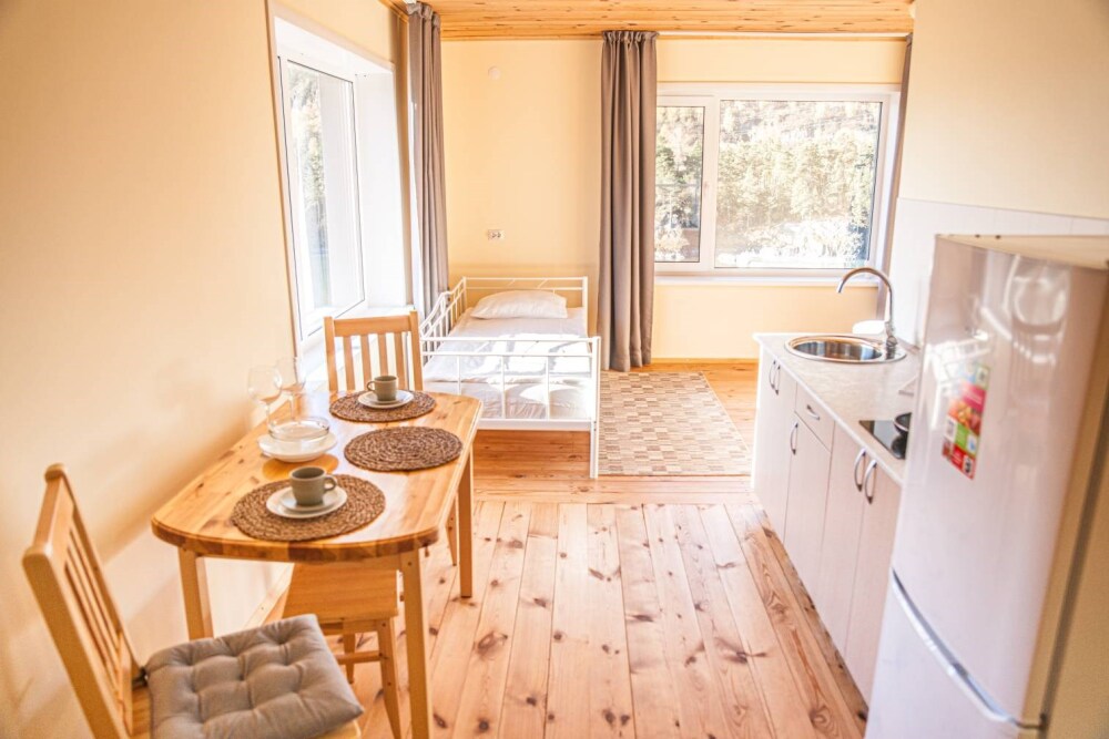 Благоустроенные номера с кухней сделают проживание комфортным. Беседки, качели, лежаки и эко-тропа позволят много времени проводить на свежем воздухе. По Вашему желанию организуем экскурсии и сплавы.