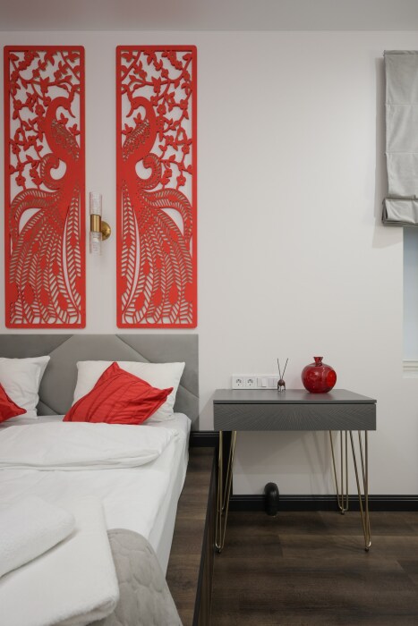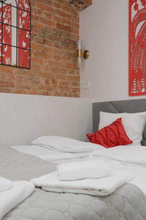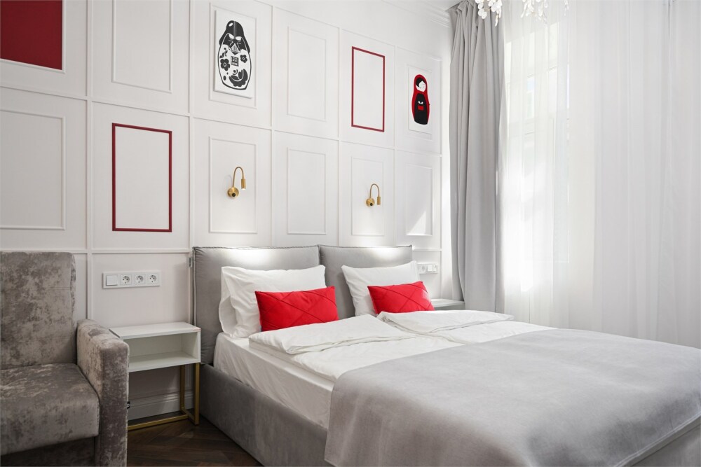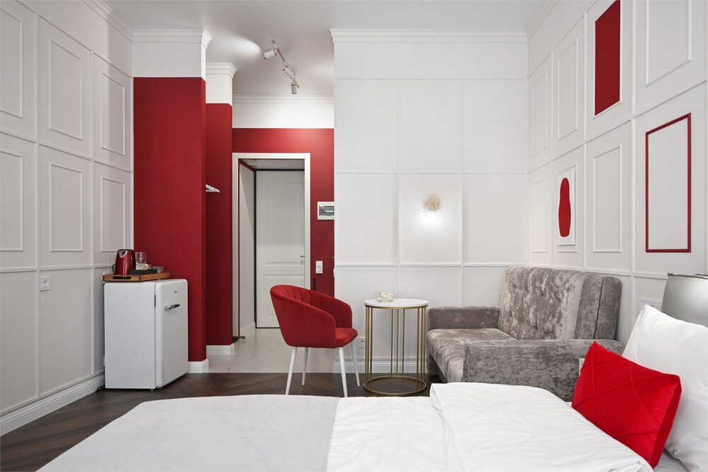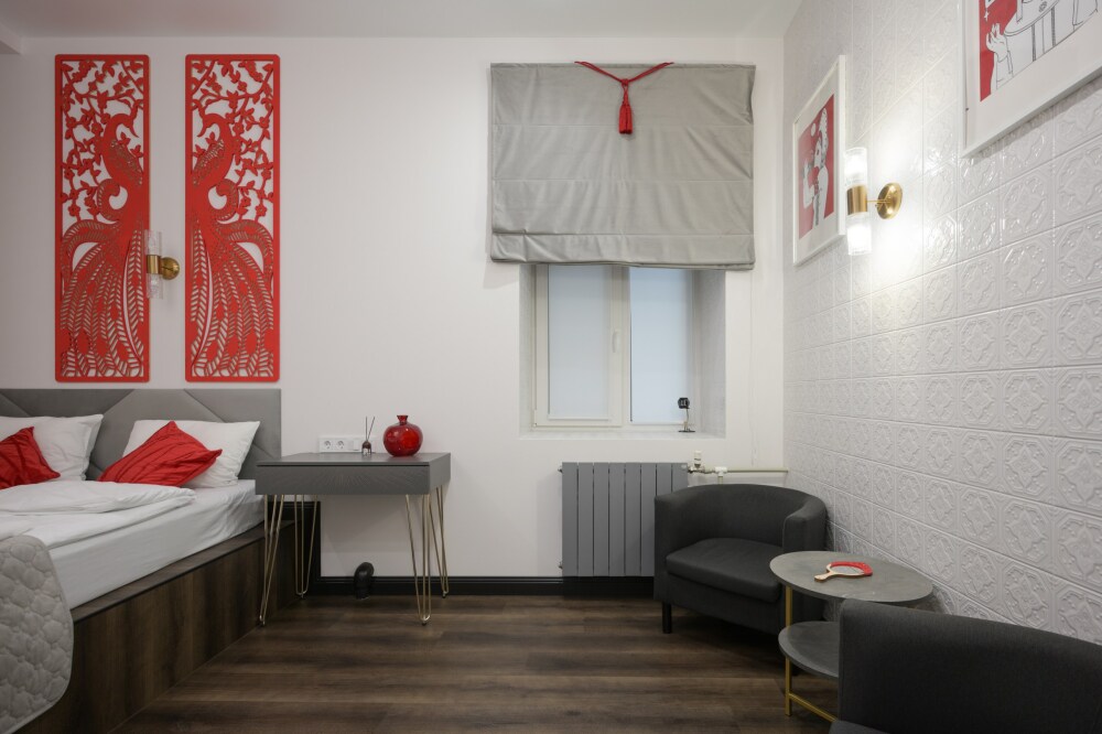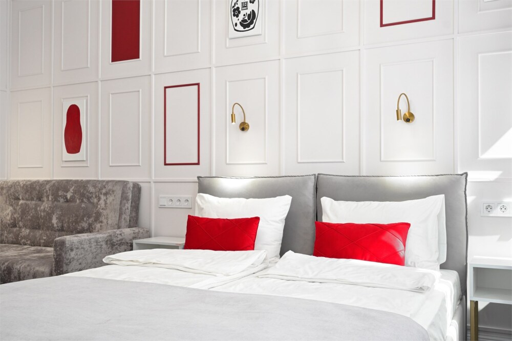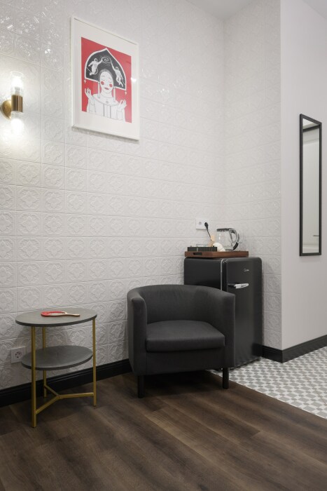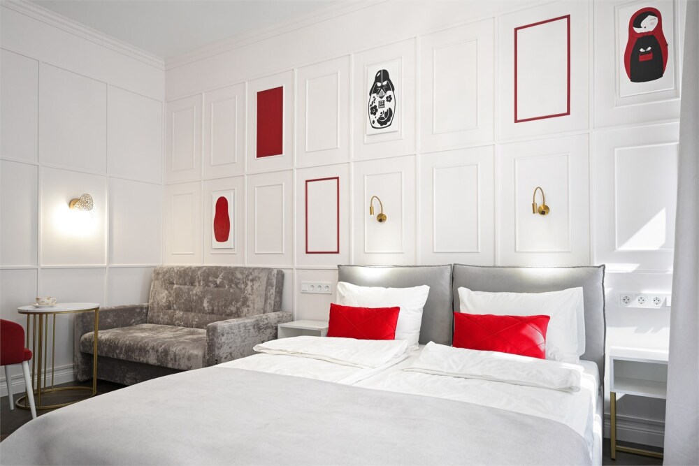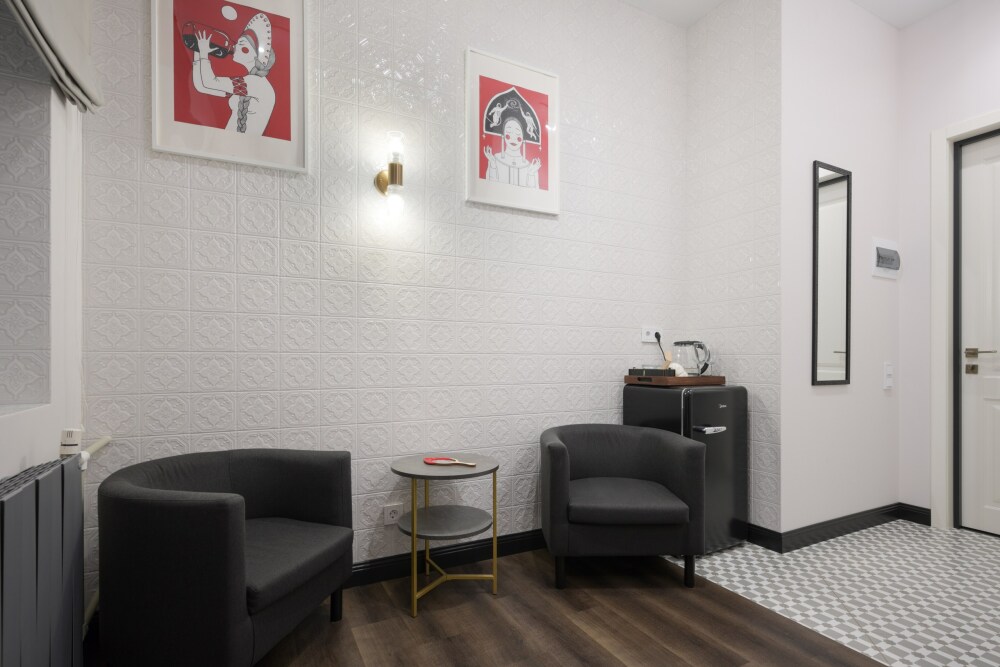 В каждой комнате имеется свой отдельный санузел с душем, а также холодильник, чайник. Дополнительно для гостей есть фен, утюг и гладильная доска. На всей территории доступен высокоскоростной Wi-Fi.