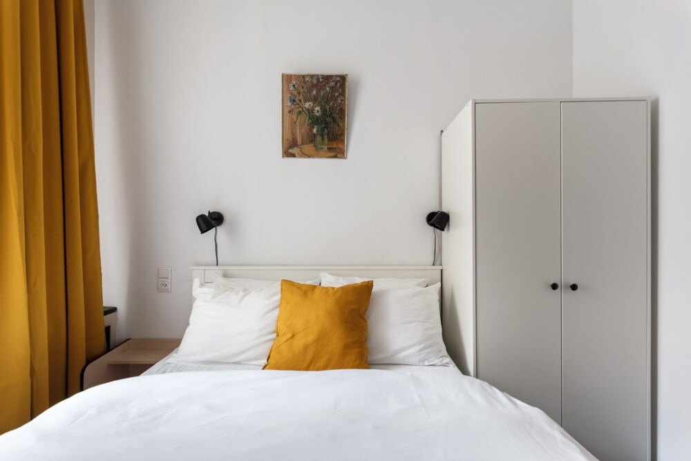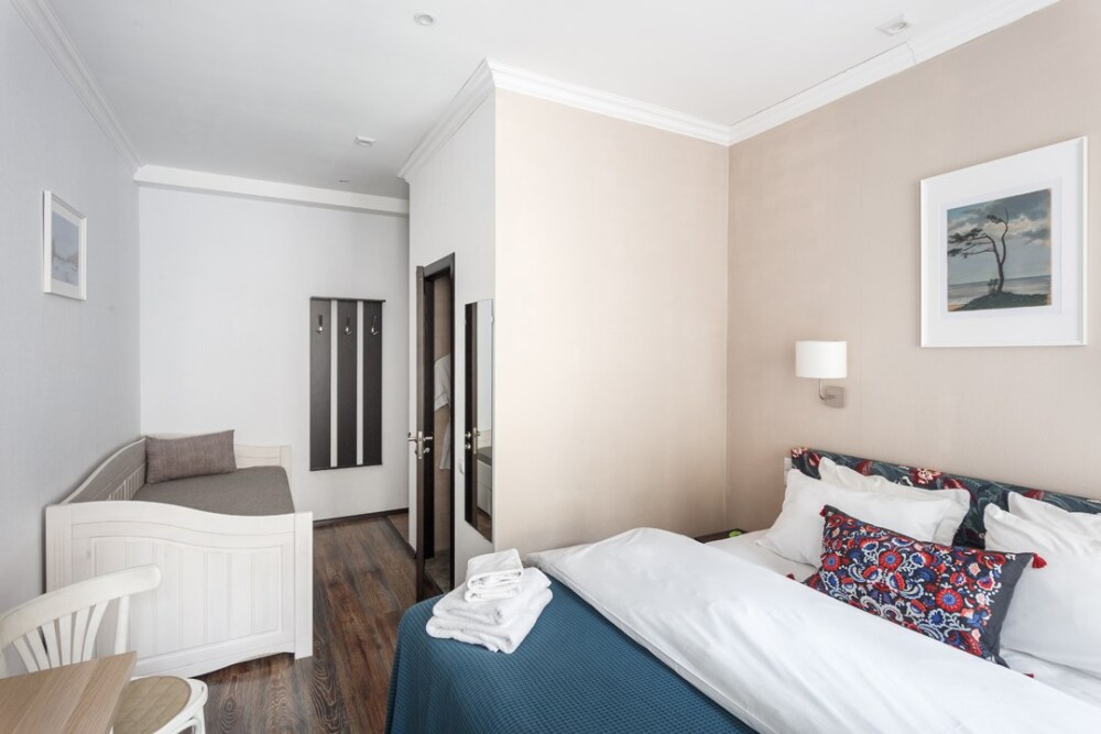 Уютная комната для сдачи посуточно с видом на улицу для двоих гостей в центре Петербурга у Исаакиевского собора. Стиральная машина и утюг – в общем доступе. Общая кухня, где можно приготовить еду.