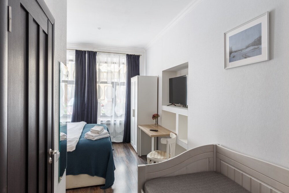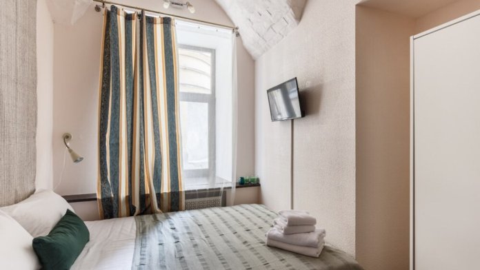 Уютная комната для сдачи посуточно с видом на улицу для одного гостя в центре Петербурга у Исаакиевского собора. Собственный внешний совмещенный санузел (вход из коридора). Общая кухня, где можно приготовить еду.