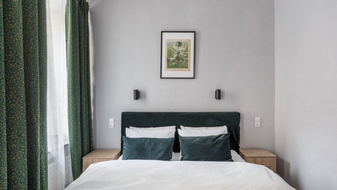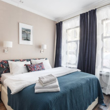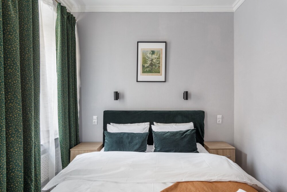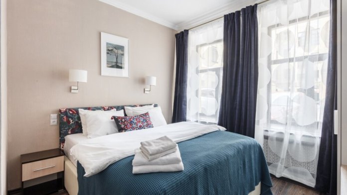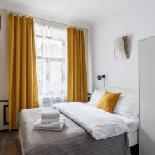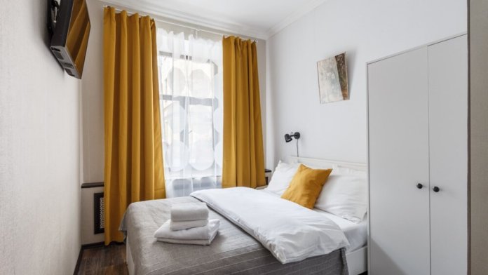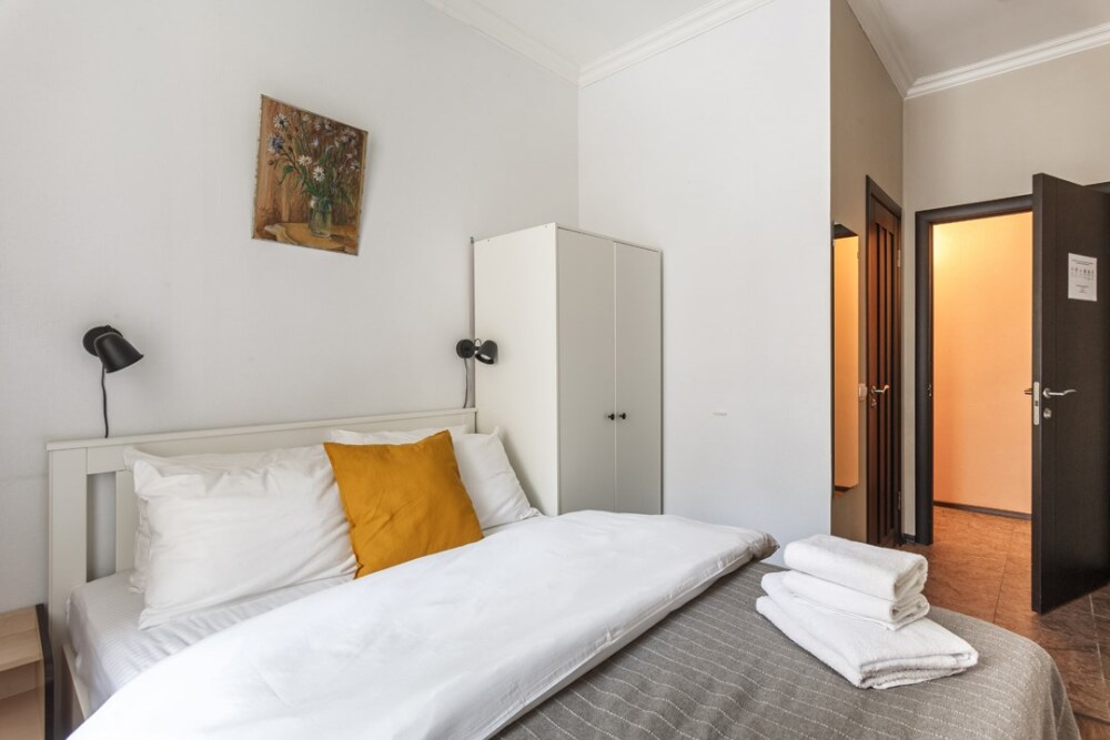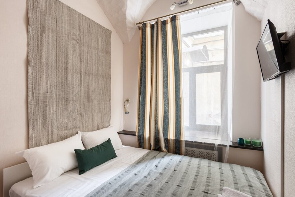 Уютная комната для сдачи посуточно с видом на улицу для двоих гостей в центре Петербурга у Исаакиевского собора. Стиральная машина и утюг – в общем доступе