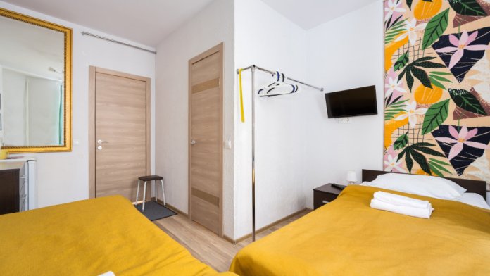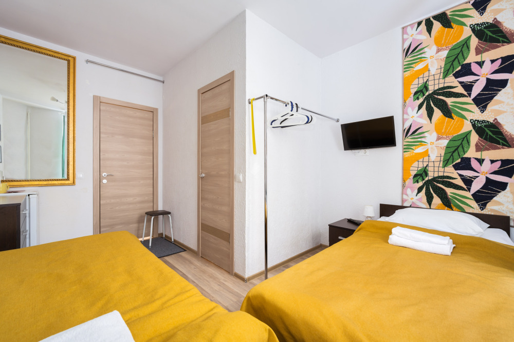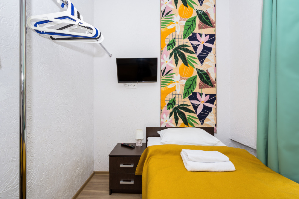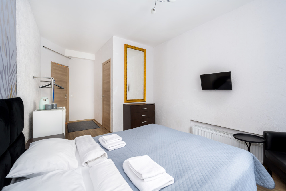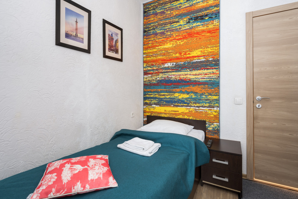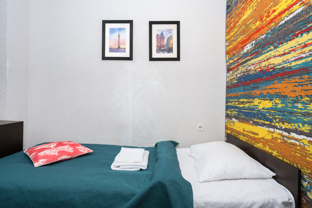 Комната для сдачи посуточно с видом на улицу для двоих гостей в центре Петербурга у Петропавловской крепости. Собственный совмещенный санузел.
