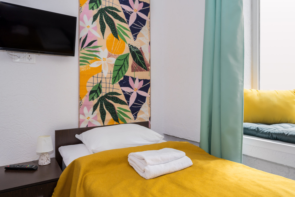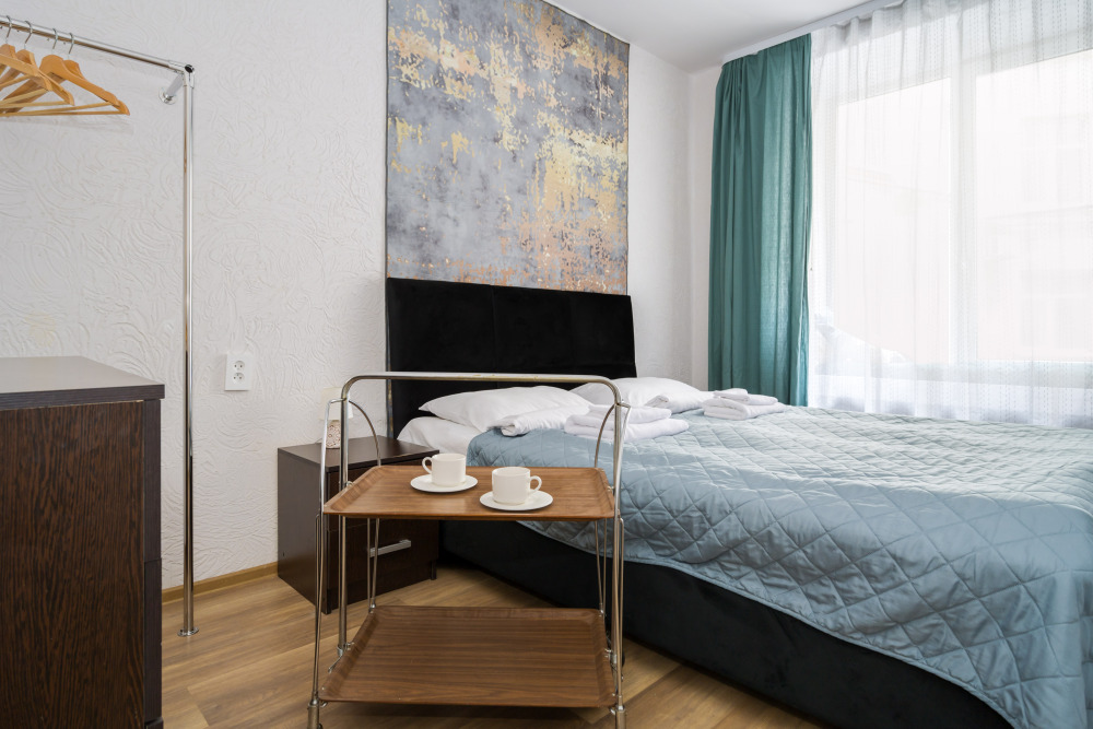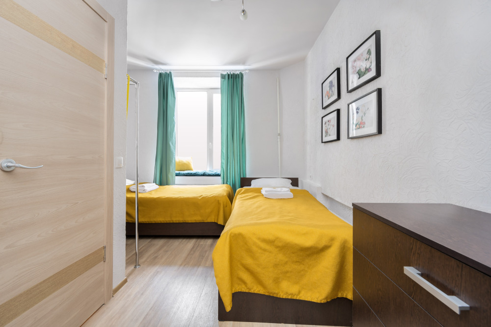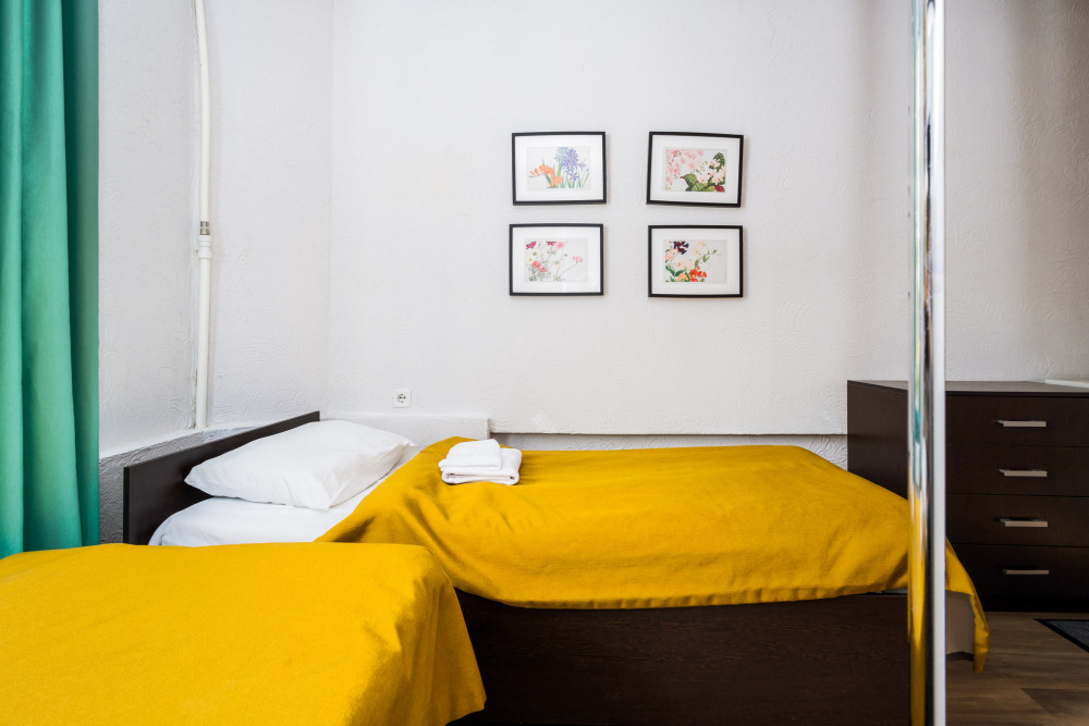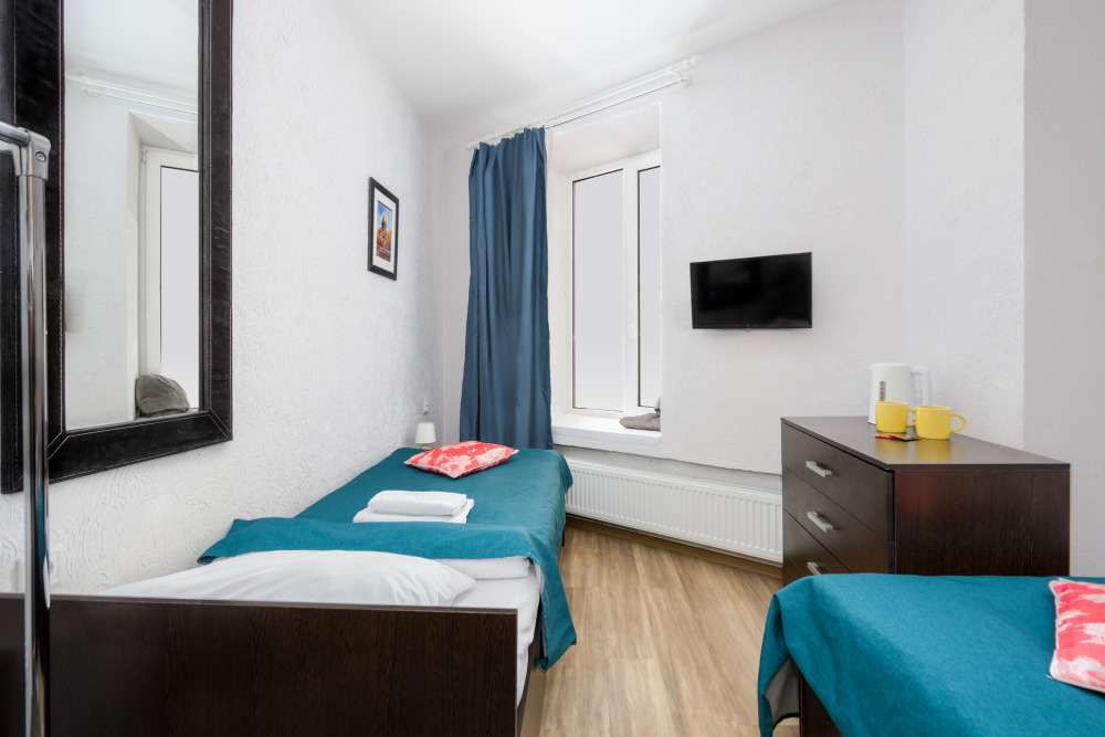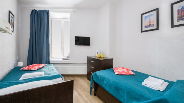 Комната для сдачи посуточно с видом на улицу для двоих гостей в центре Петербурга у Петропавловской крепости.