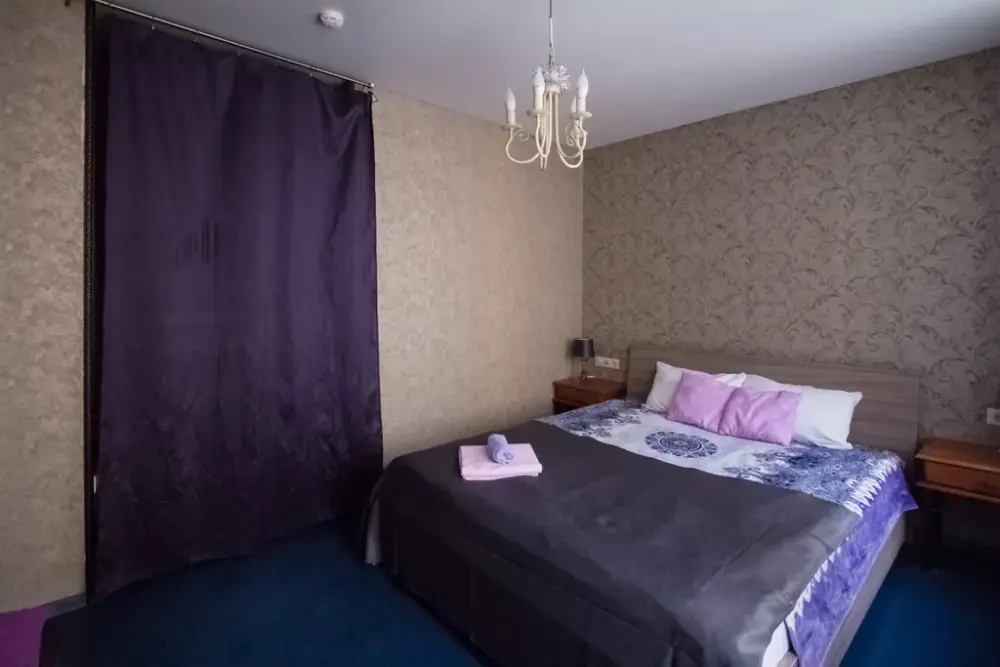 В распоряжении гостей 6 комнат. В комнатах номере есть телевизор, холодильник, микроволновая печь, чайник, душевая кабина, туалет находится на этаже. Оснащение комнат: двуспальная и две односпальные кровати, прикроватная тумбочка, ночник и зеркало, шкаф с вешалками.