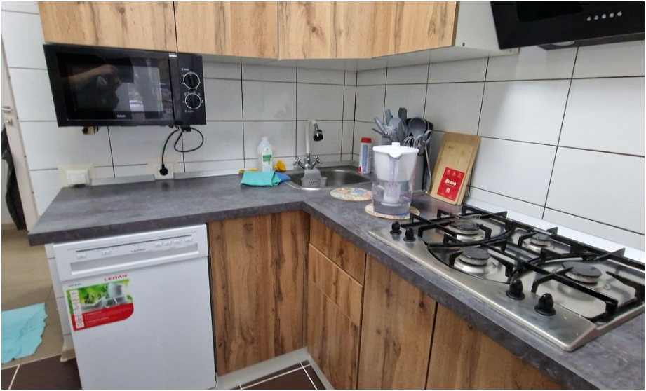 Кухонное пространство прекрасно оборудовано: плита, микроволновая печь, электрочайник и вся необходимая кухонная утварь. Готовьте вкусные блюда, наслаждайтесь завтраком или ужином с близкими. Также в квартире есть стиральная машинка, что немаловажно для длительных поездок. Мы предоставляем все необходимые принадлежности, чтобы Вы могли готовить с удовольствием.