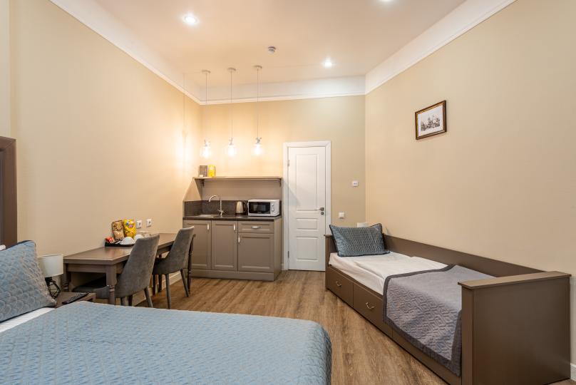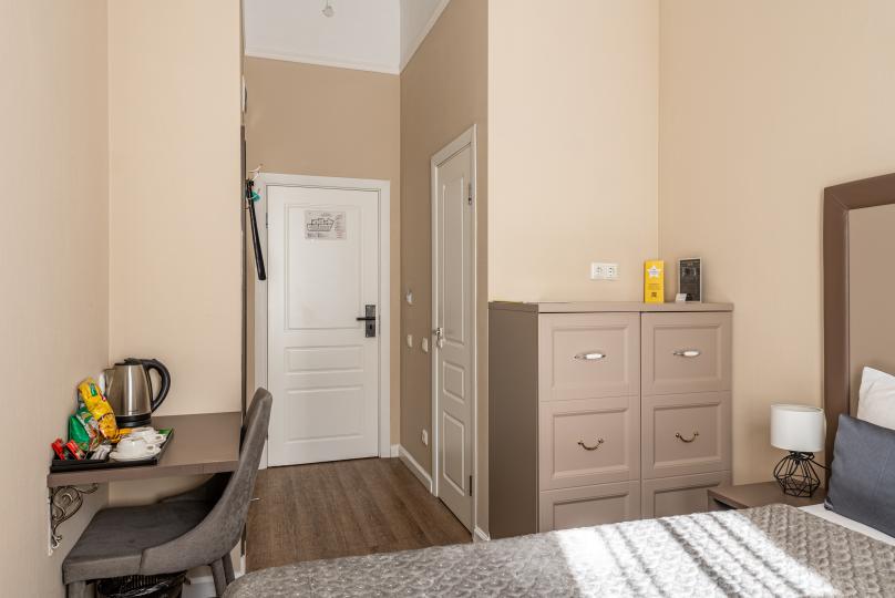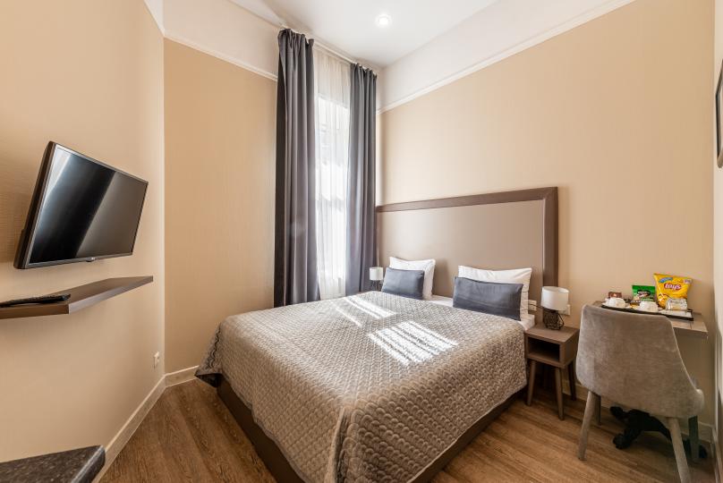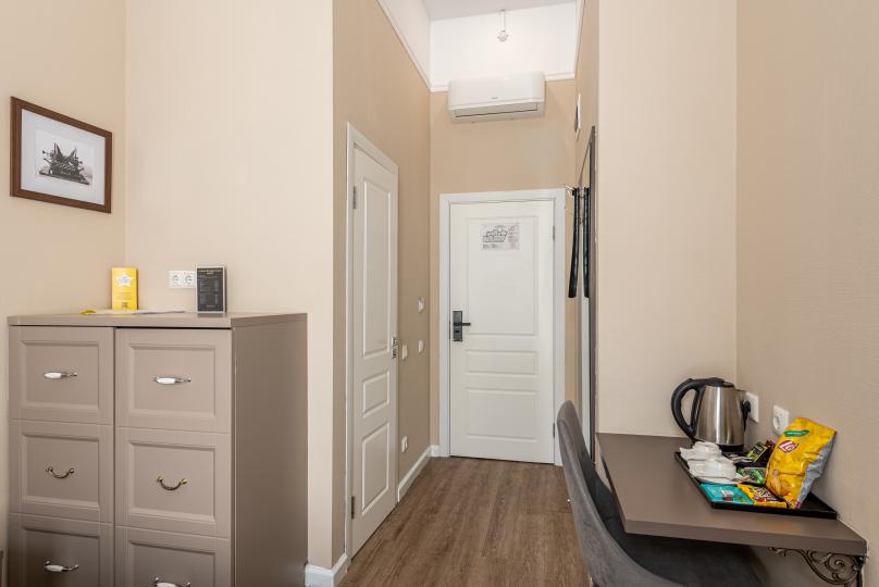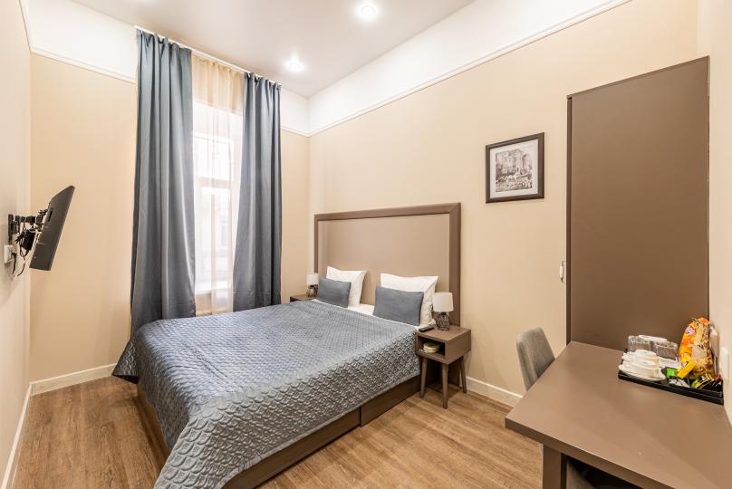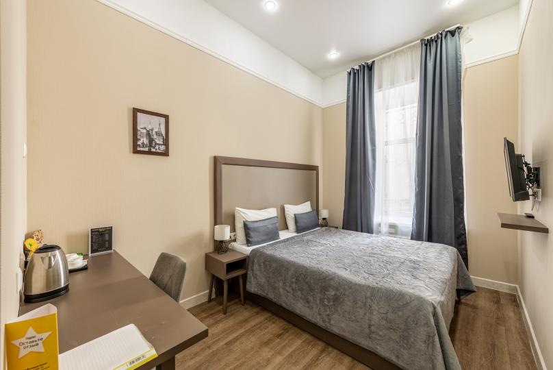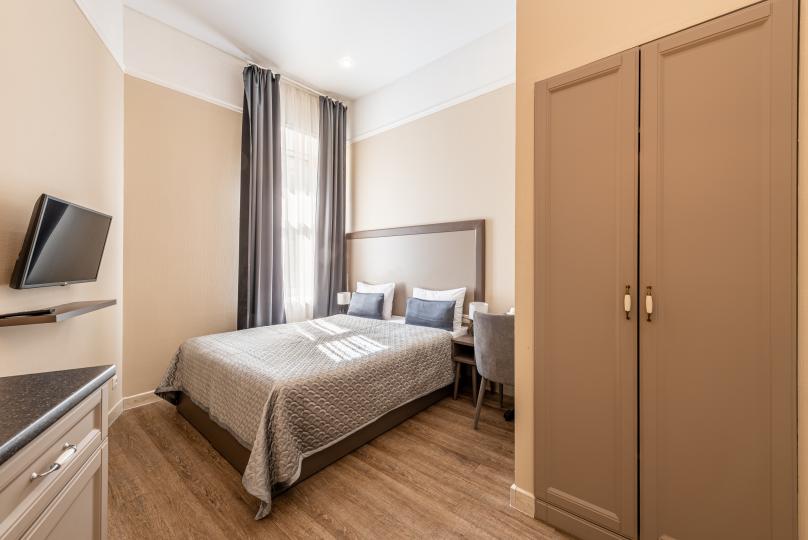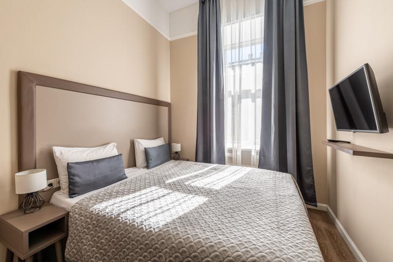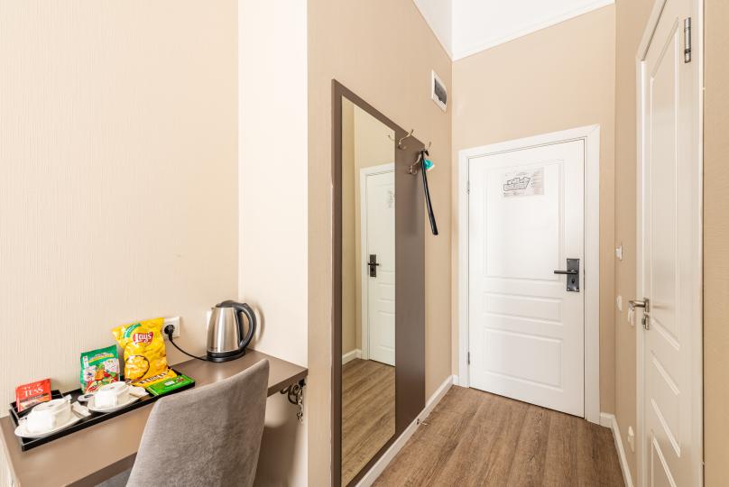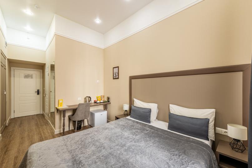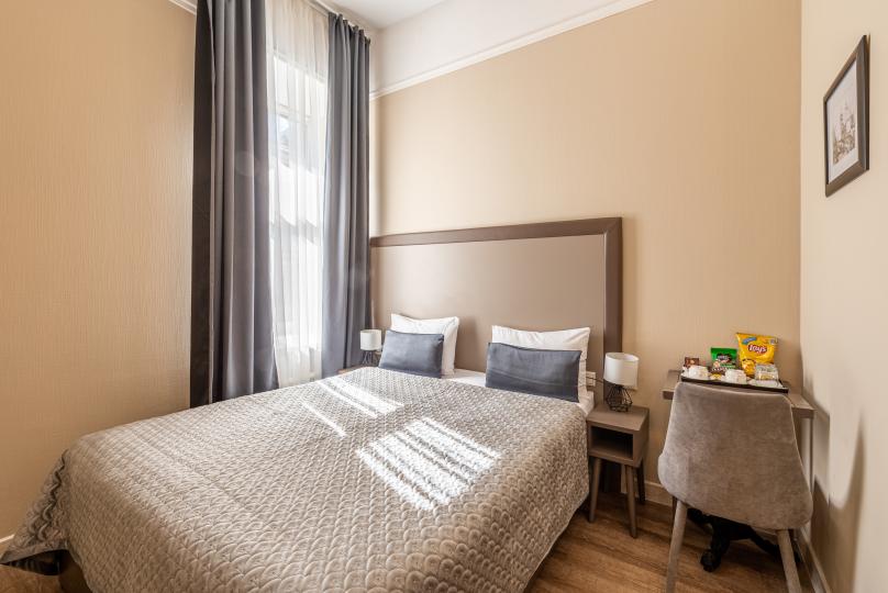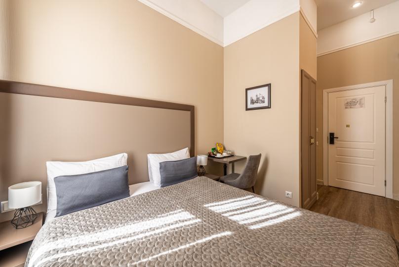 Комфортный номер с одной двуспальной или двумя односпальными кроватями. Оборудован мини-кухней. Имеются номера с видом на Невский проспект и на тихий двор. К услугам гостей бесплатные косметические принадлежности, банные халаты, тапочки, wi-fi, чай, кофе, кулер.