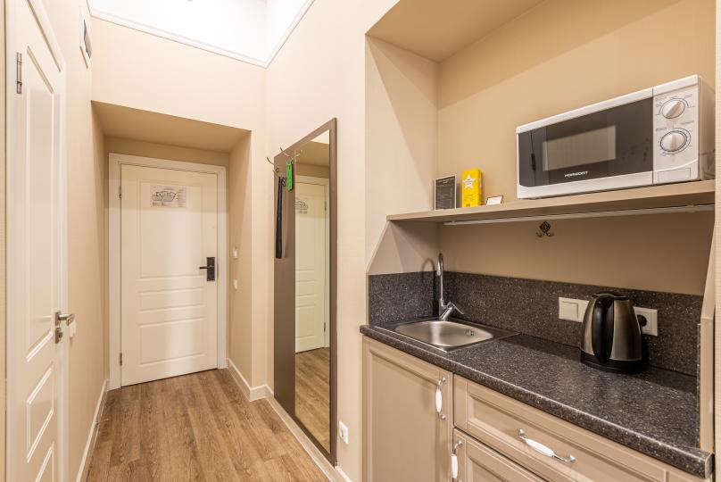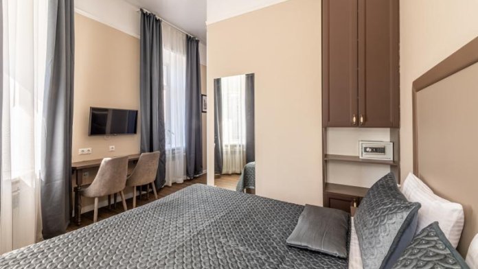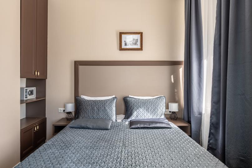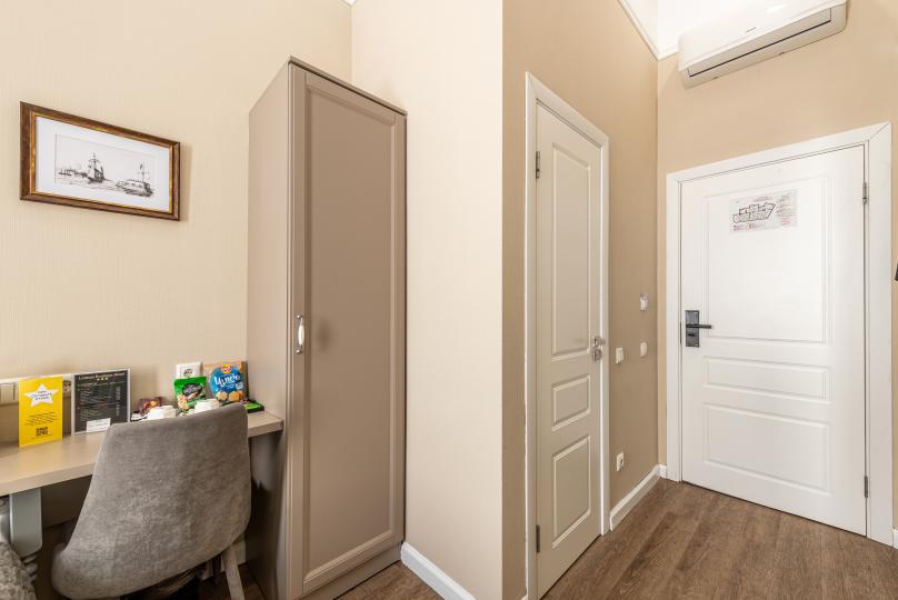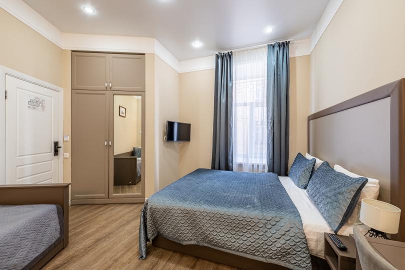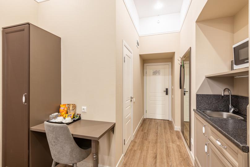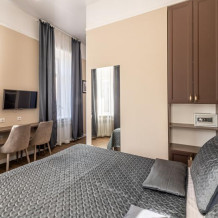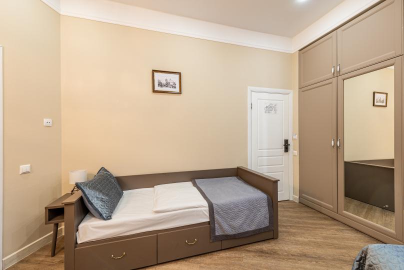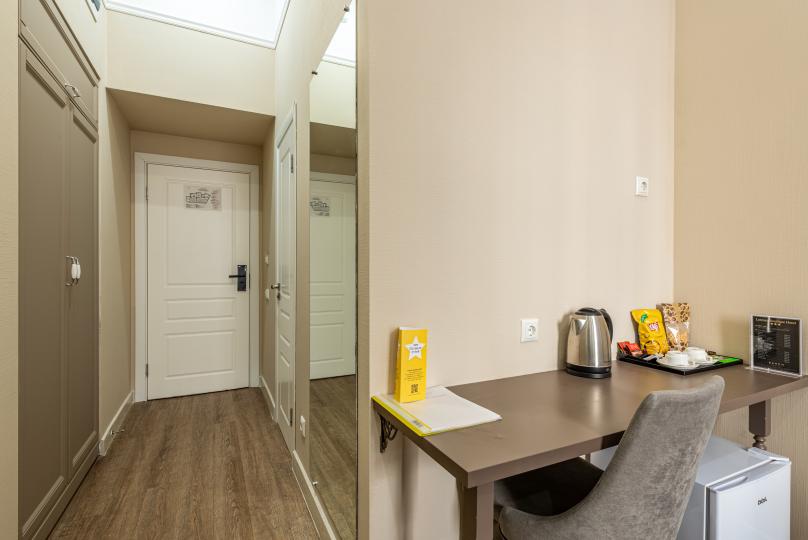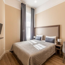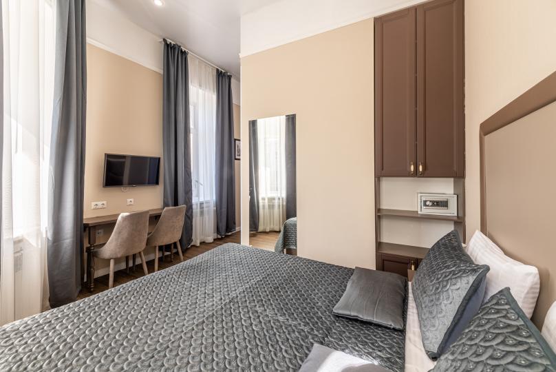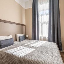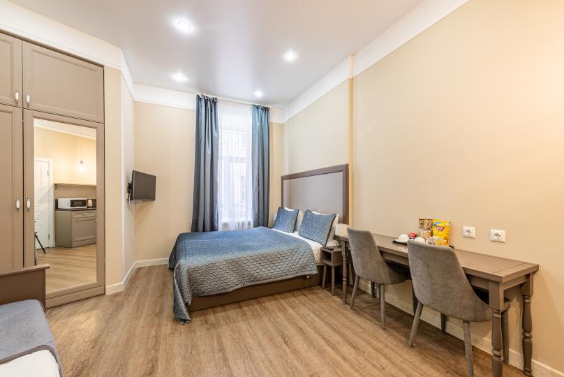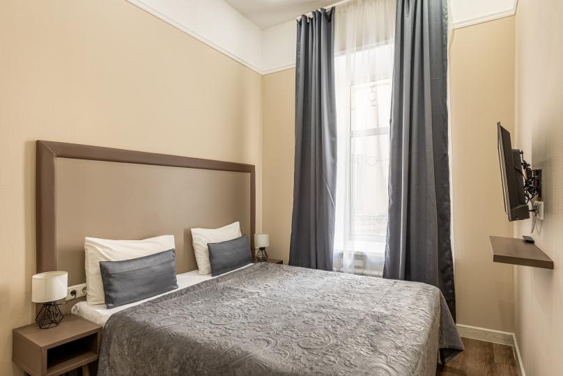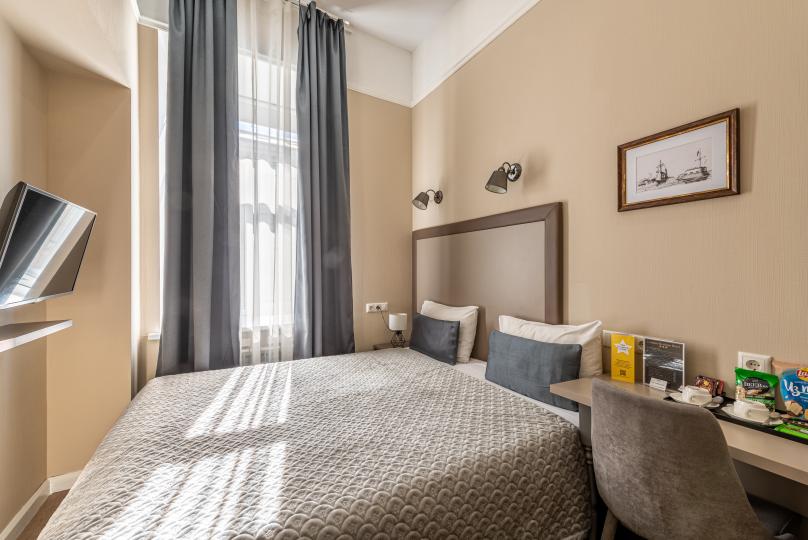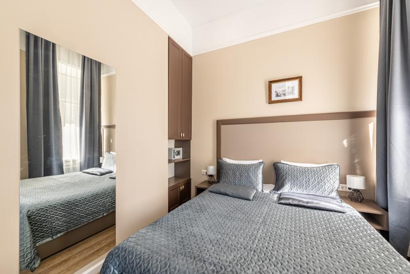 Комфортный номер с одной двуспальной или двумя односпальными кроватями. Оборудован мини-кухней. Имеются номера с видом на Невский проспект и на тихий двор. К услугам гостей бесплатные косметические принадлежности, банные халаты, тапочки, wi-fi, чай, кофе, кулер.