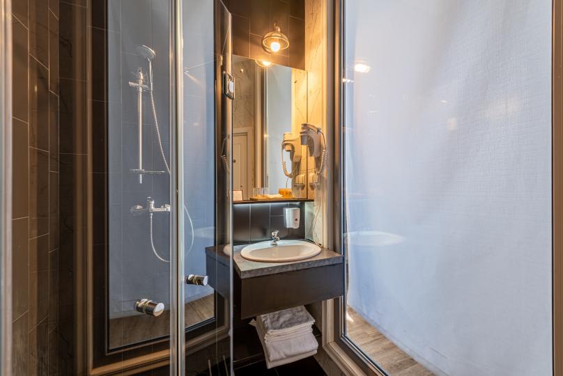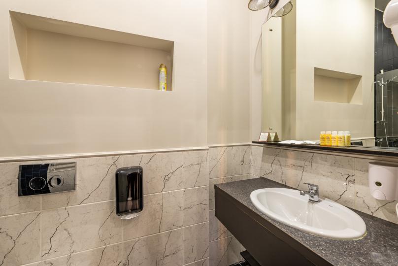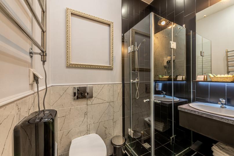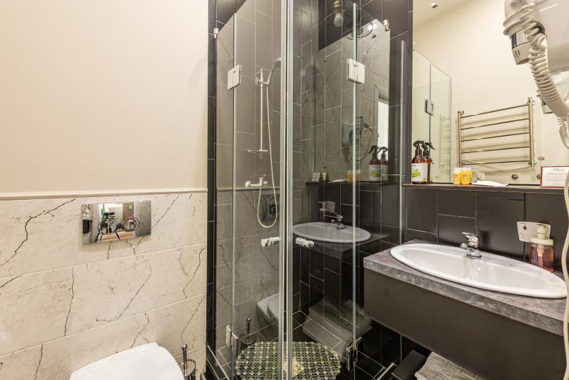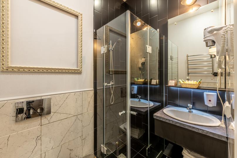 Уютный двухместный номер с собственной ванной комнатой с душевой кабиной и классическим дизайном.