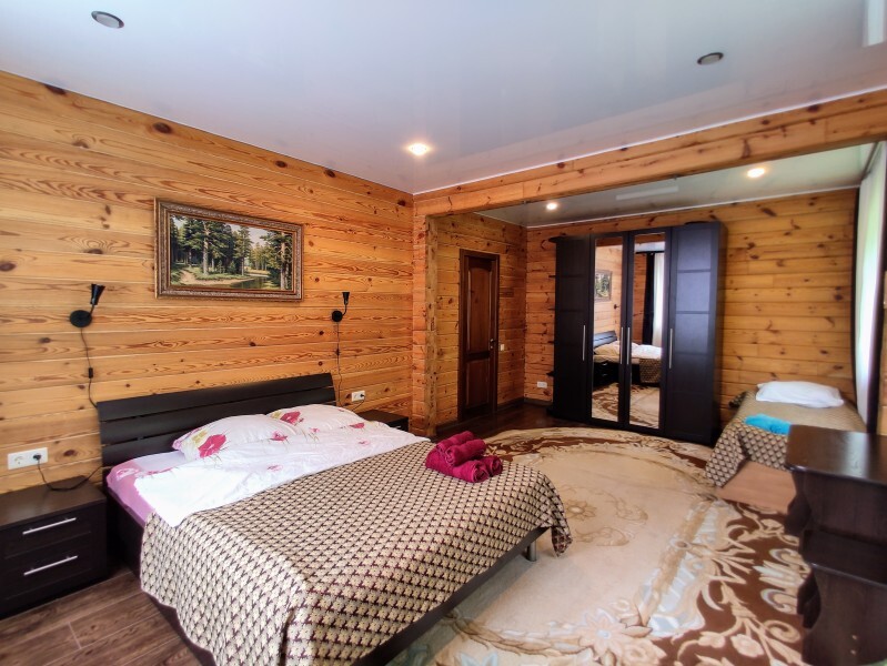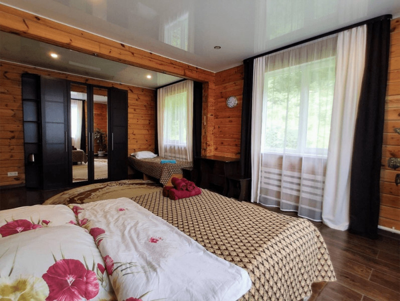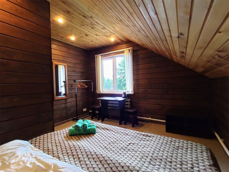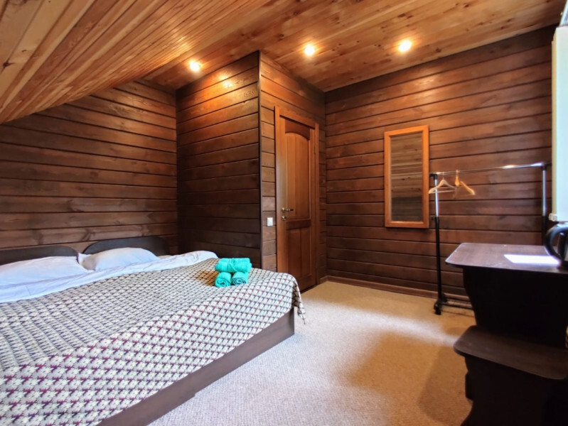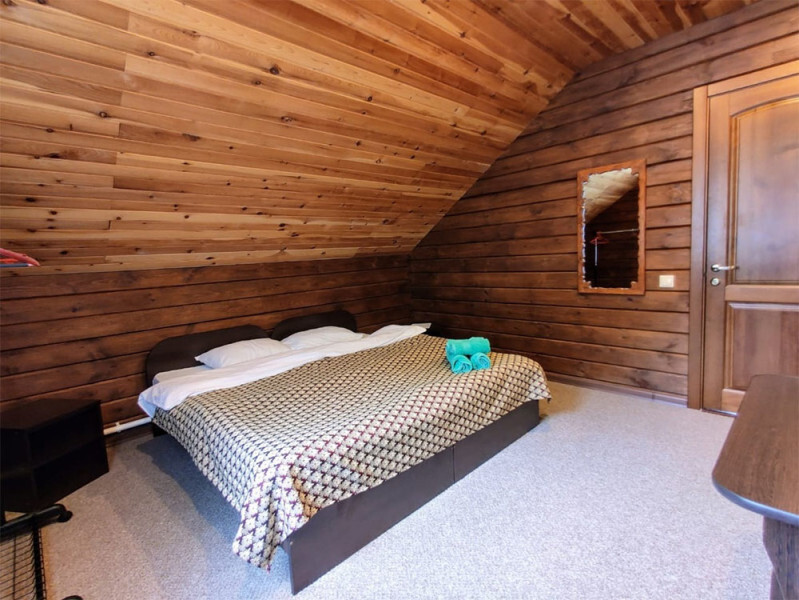 На втором этаже две спальни с двух и трехместным размещением. В каждую из них есть возможность добавления дополнительного спального места в виде раскладушки.