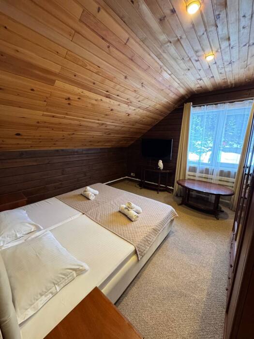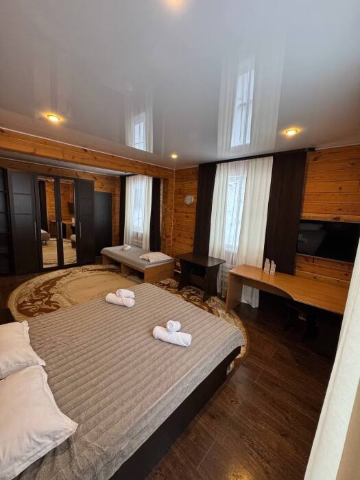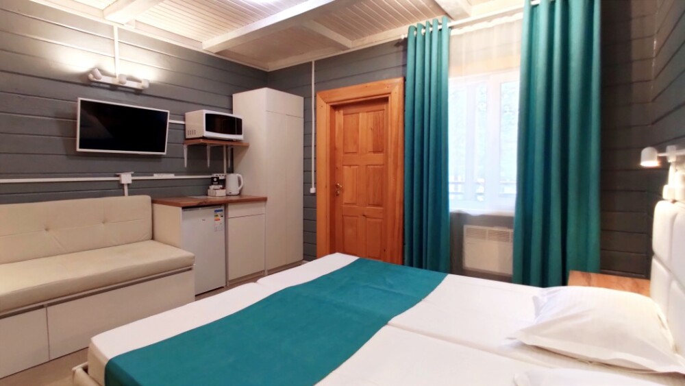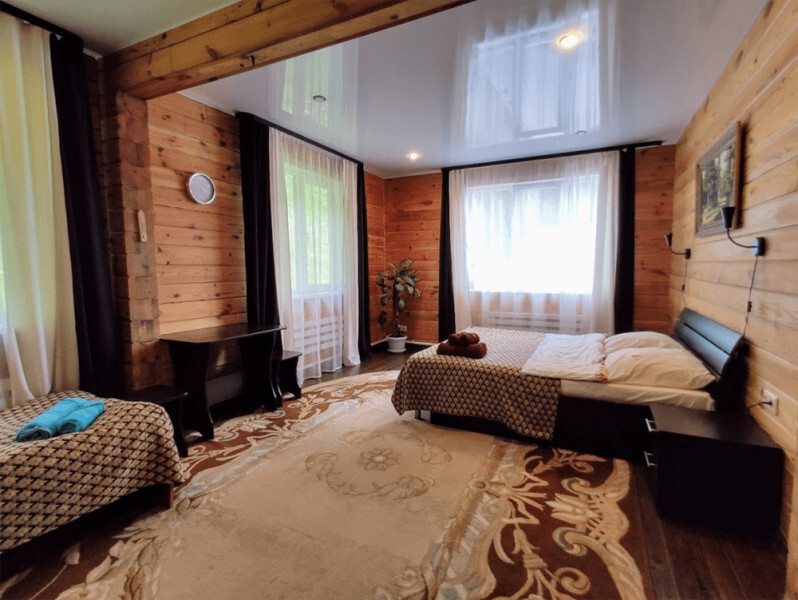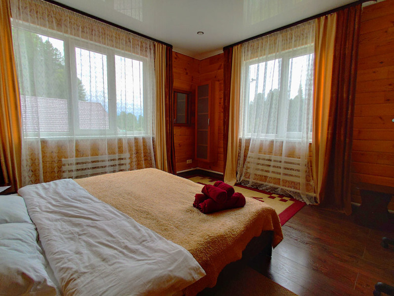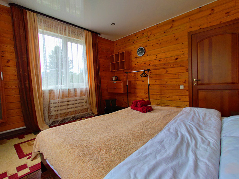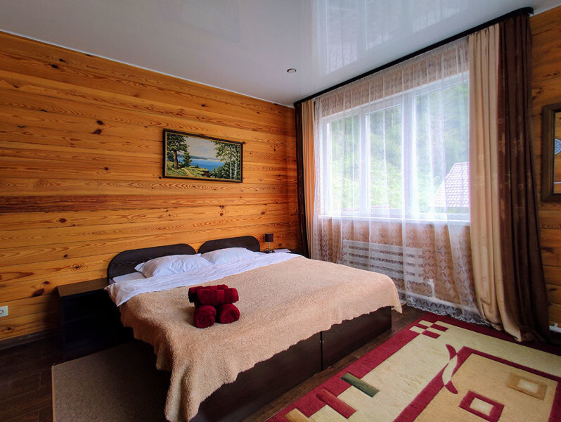 Дома из кедра, Вы дышите экологичным и целебным воздухом не только на улице, но и в помещении. Мы предлагаем номера с удобствами для индивидуальных туристов, пар, семей с детьми и дружных компаний. На Ваш выбор варианты с санузлом в номере или с общим туалетом на этаже. Поселиться можно в компактном помещении эконом-класса, в стандартной комнате или просторных апартаментах. Удобства городского уровня: горячая и холодная вода, бесплатный интернет, просторные парковки, терраса для посиделок, зоны барбекю.