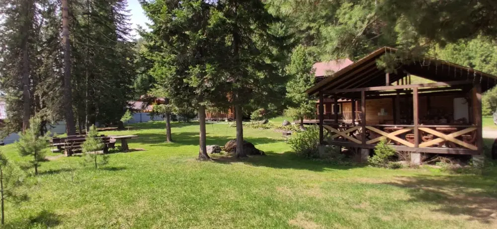 Наша база отдыха находится в живописной части Горного Алтая и подходит для организации романтических встреч, проведения уикенда, полноценного отпуска, новогодних или майских праздников. Тихий уголок в окружении вековых кедров Огромные деревья по всей территории. Гарантия покоя, вторая линия от озера, высокий забор вокруг базы отдыха, под окнами не ездят машины.