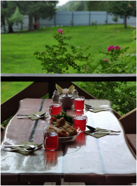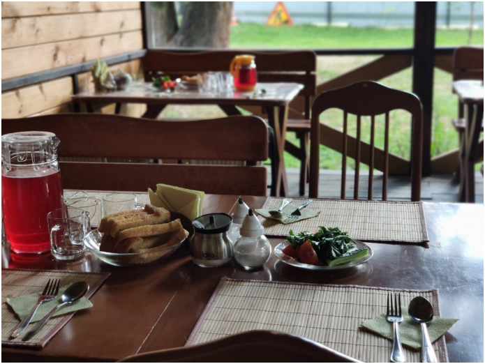 По утрам гостям предлагаются завтраки, также можно заказать комплексные обеды и ужины. В меню есть классические и современные блюда на разные вкусы «Русские завтраки», комплексные обеды и ужины готовят повара с большим практическим опытом. В высокий сезон готовим блюда по меню из под ножа. В нашей усадьбе завтраки включены во все категории номеров. Еда под заказ по меню состоит из полезных и свежих продуктов.