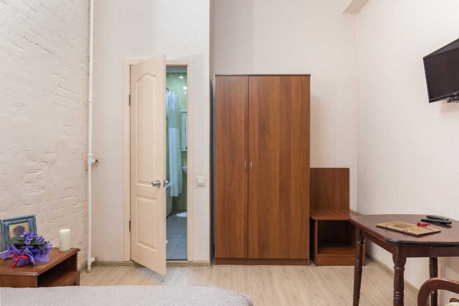 Стандартный номер, оборудованный всем необходимым для комфортного проживания, плоский ЖК телевизором, письменным столом, собственная ванная комната с душевой кабиной, раковиной и туалетом. Гостям предоставляется постельное белье, полотенца, доступ к интернету. Вид во двор.
