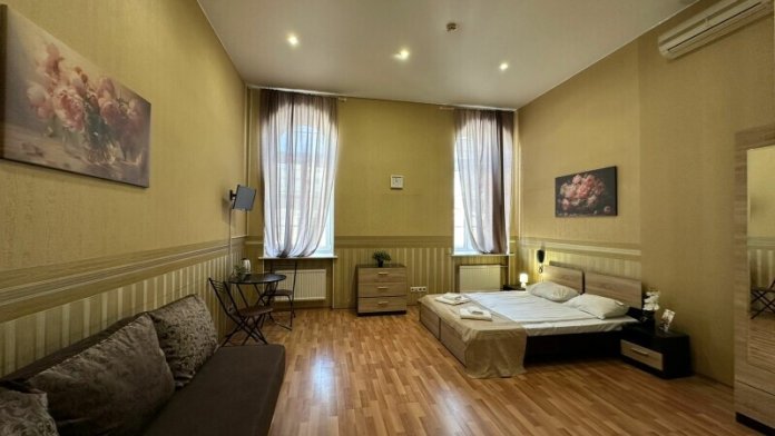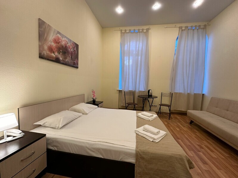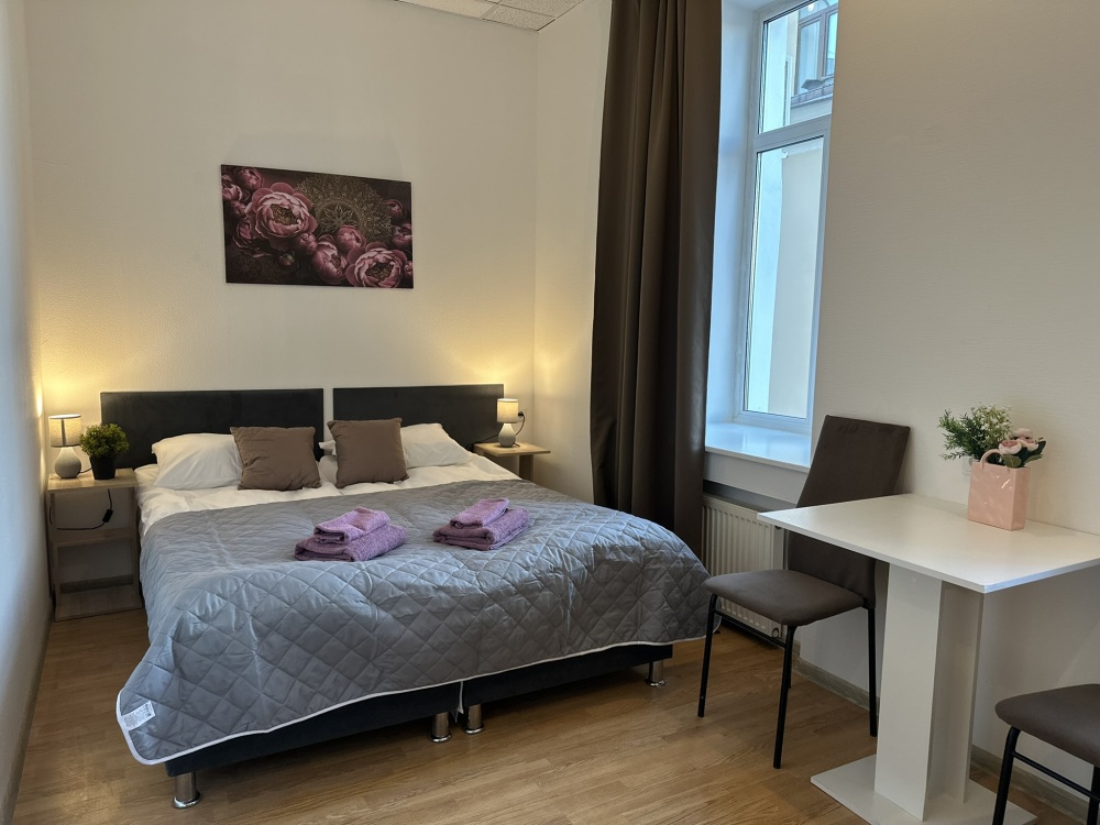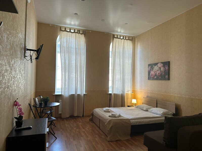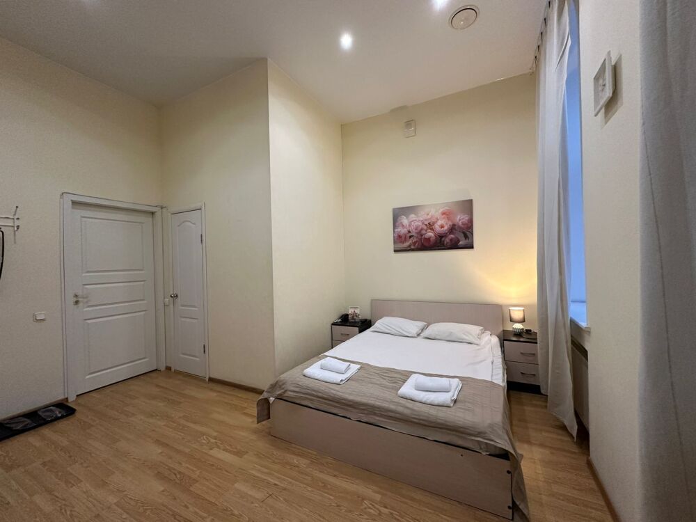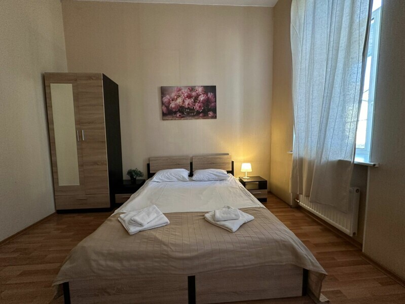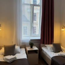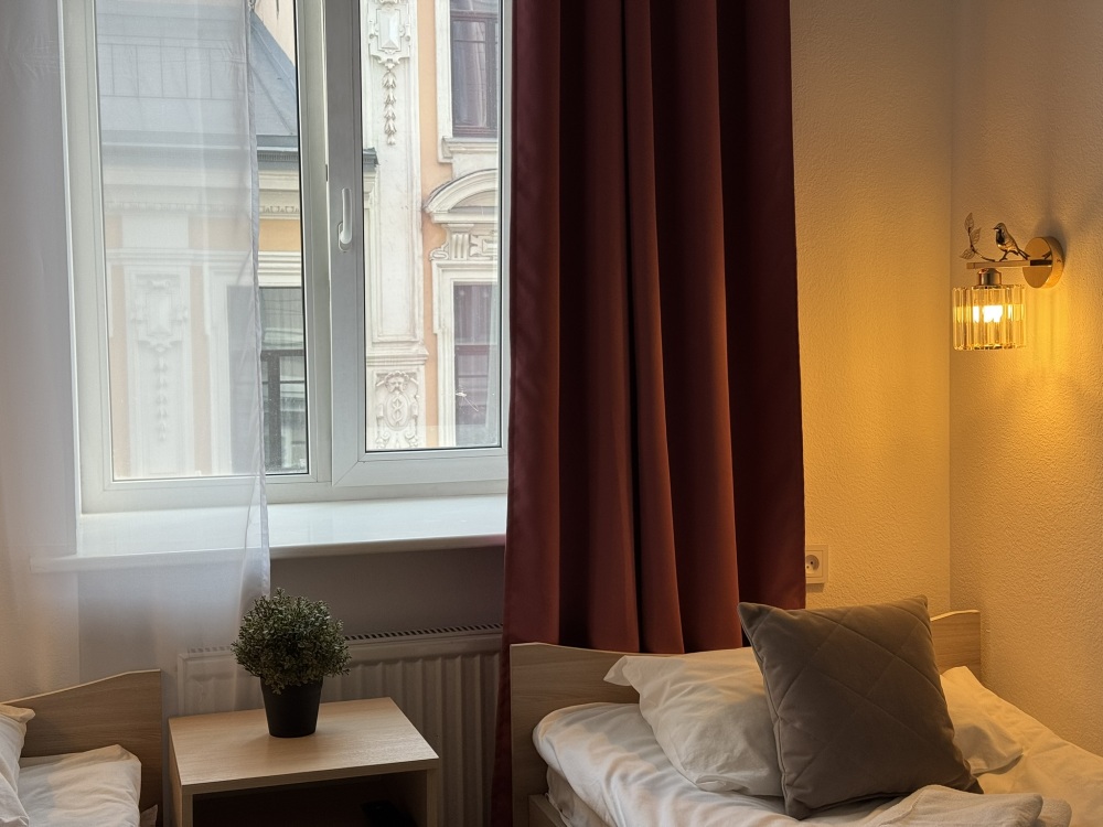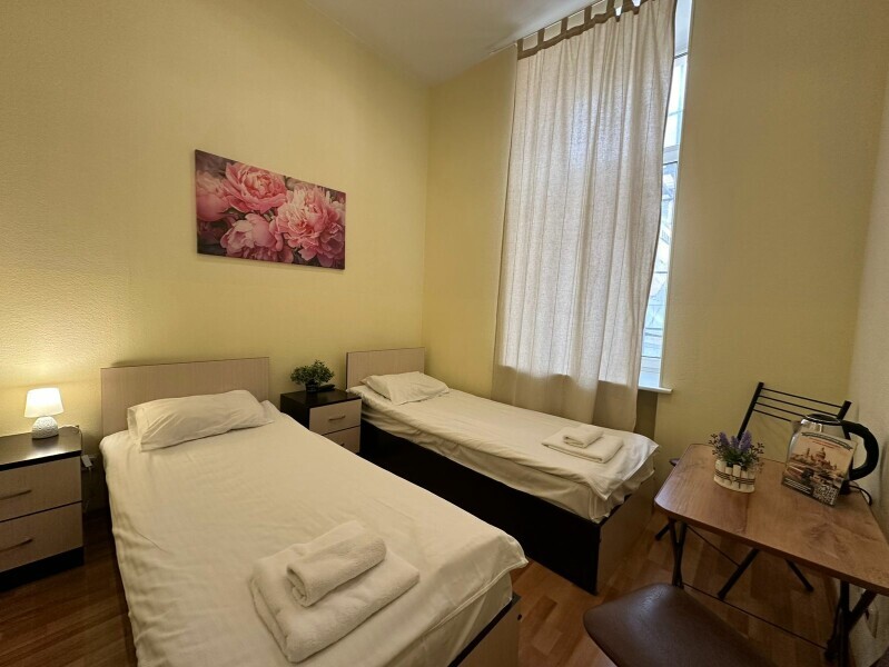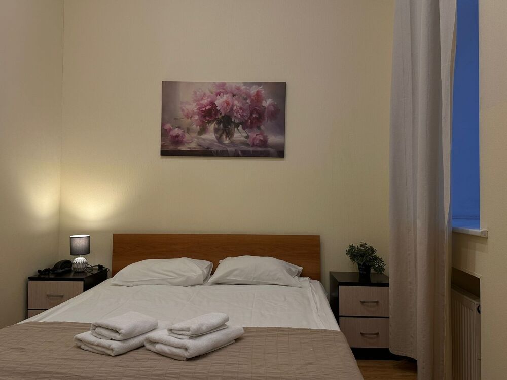 Стандартный двухместный номер с двуспальной кроватью или двумя односпальными кроватями, оборудованный всем необходимым для комфортного проживания: ЖК телевизор, собственная ванная комната с душевой кабиной, раковиной и туалетом. Гостям предоставляется постельное белье, полотенца, доступ к интернету. Номер находится на 5 этаже без лифта с удобной широкой лестницей.
