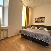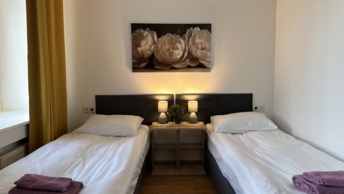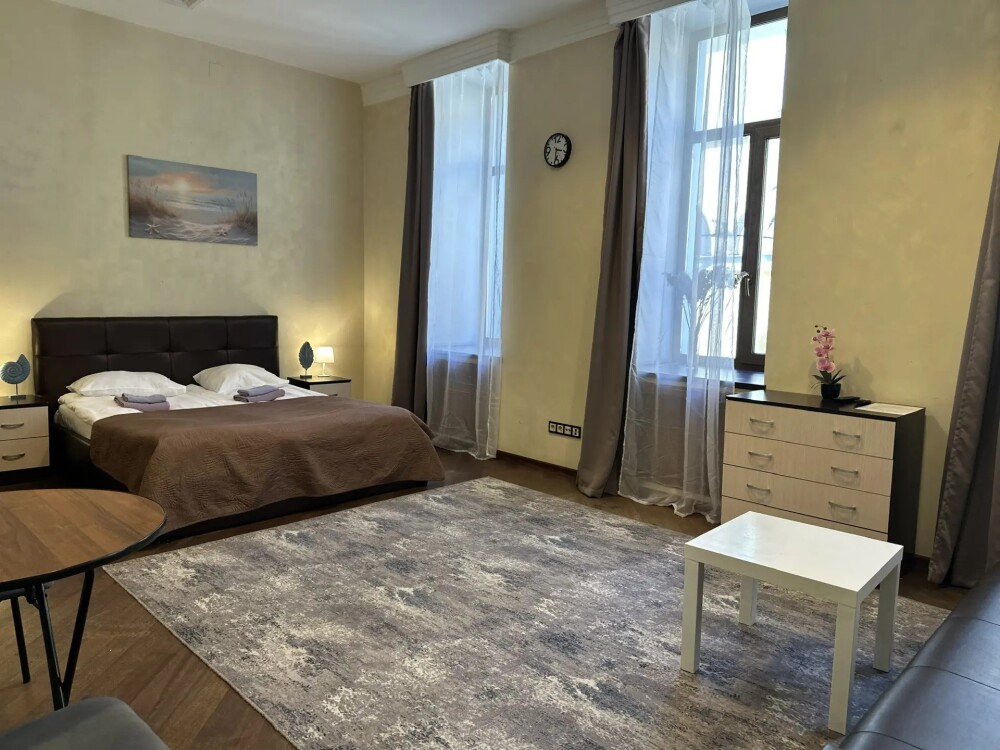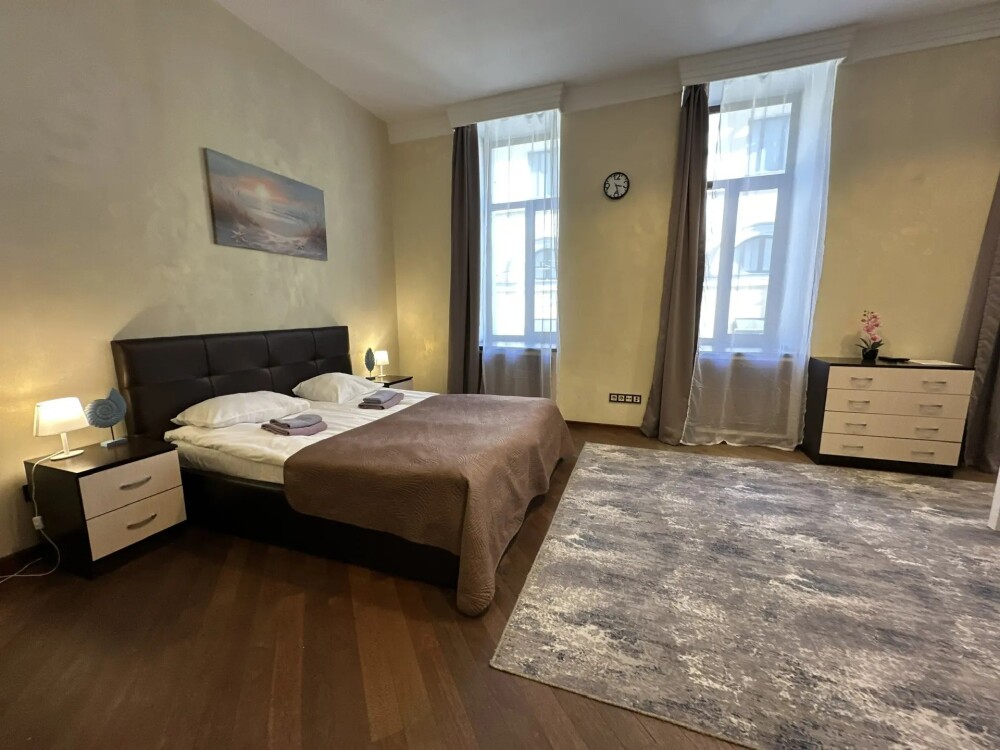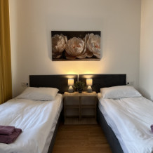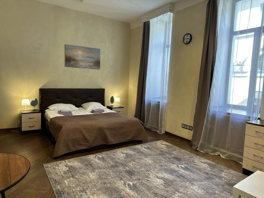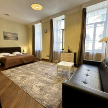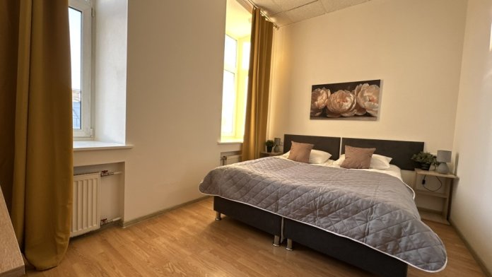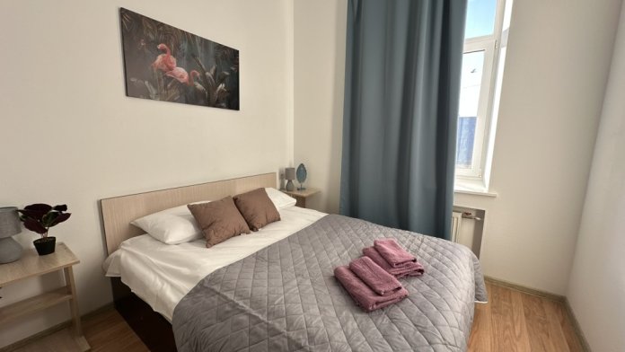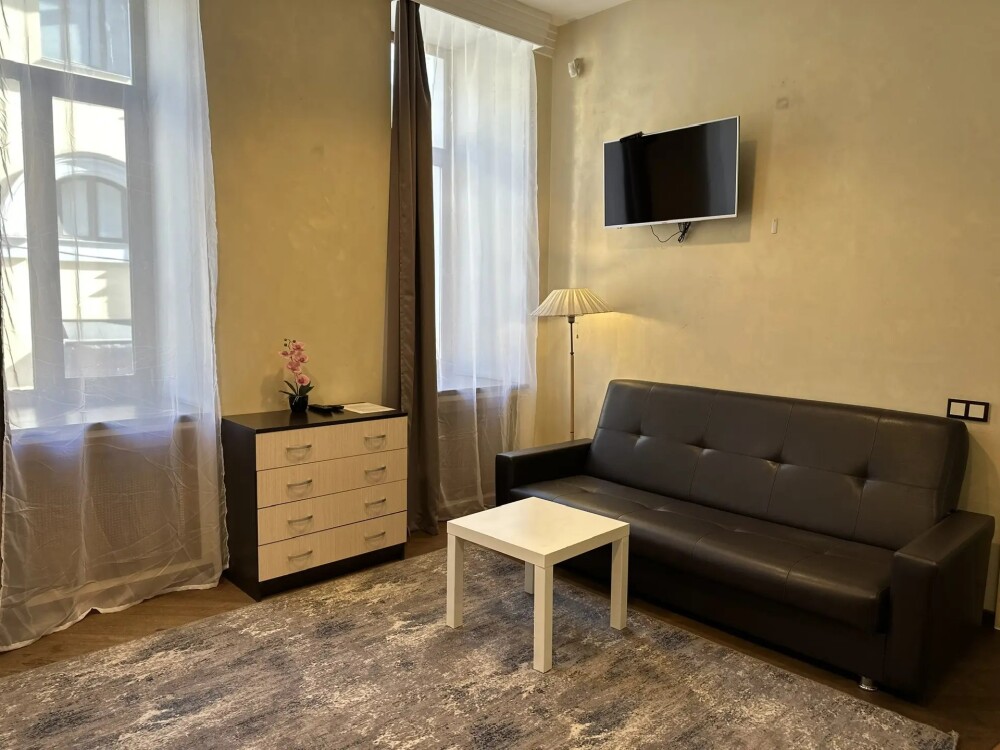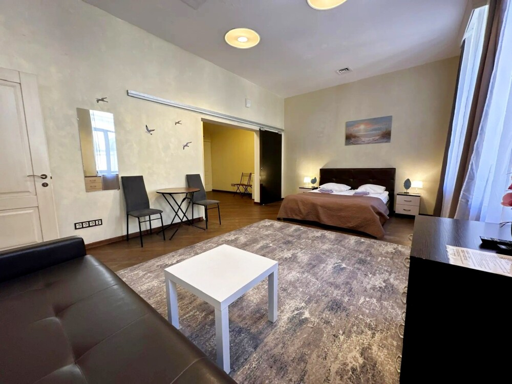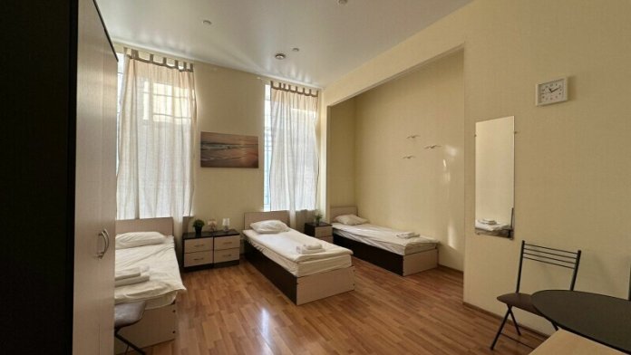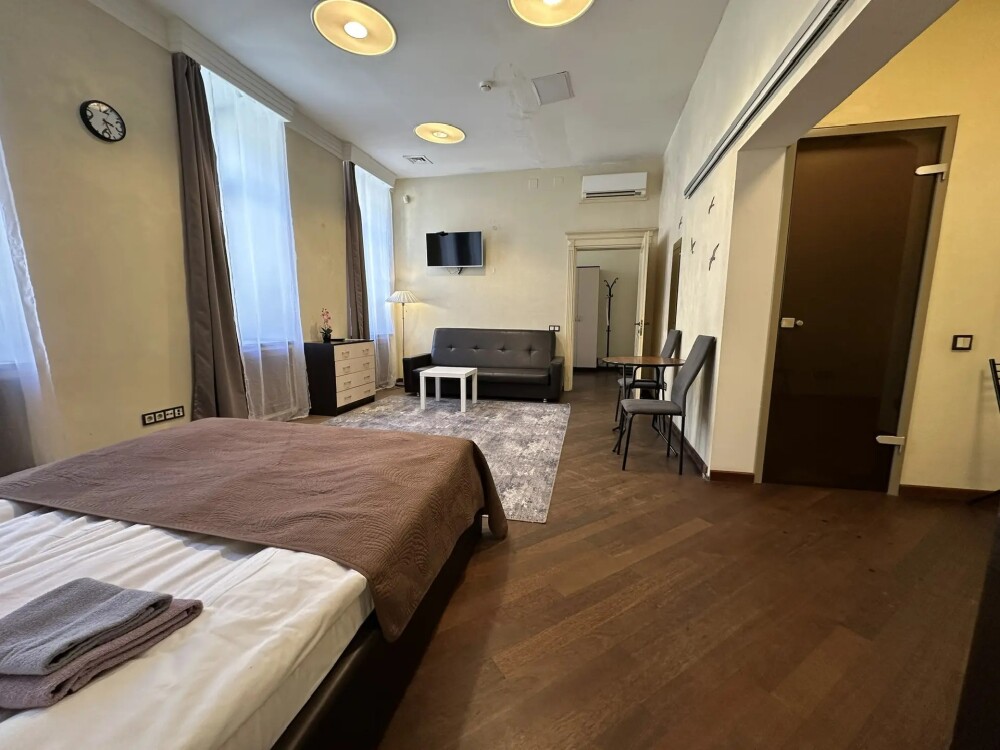 Четырехместный номер с двуспальной кроватью или двумя односпальными кроватями и двухместным диваном, оборудованный всем необходимым для комфортного проживания: кондиционер, ЖК телевизор, собственная ванная комната с душевой кабиной, раковиной и туалетом. Гостям предоставляется постельное белье, полотенца, доступ к интернету. Номер находится на 5 этаже без лифта с удобной широкой лестницей.