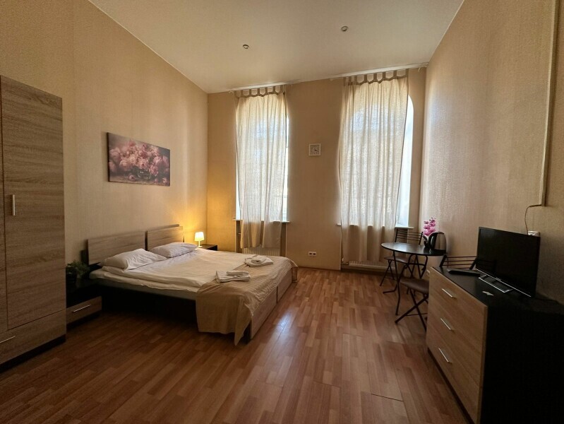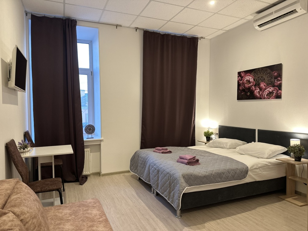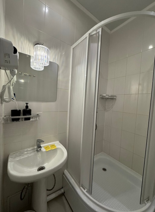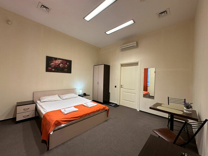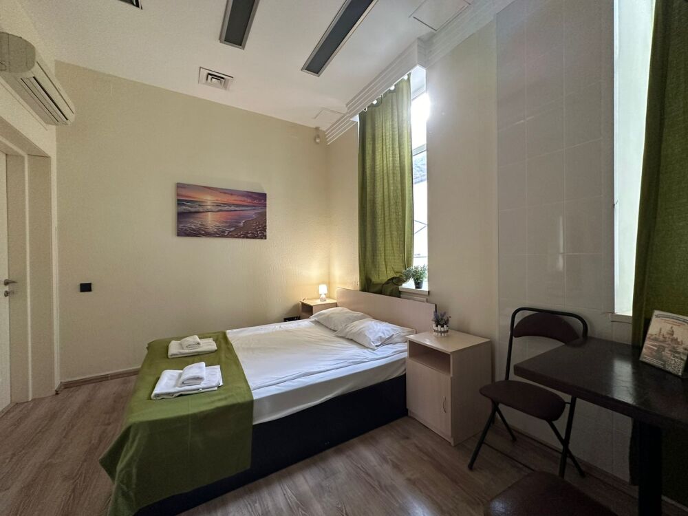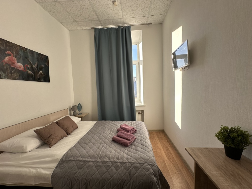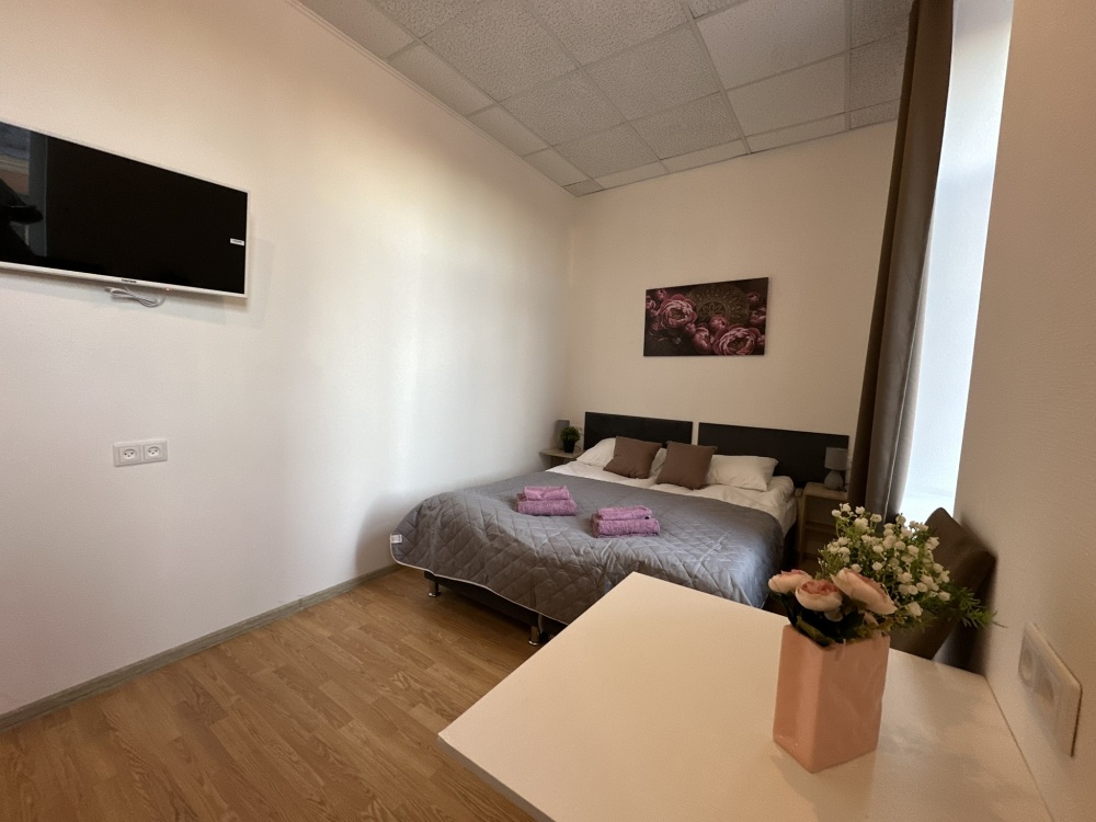 Бюджетный двухместный номер с двуспальной кроватью 140 см, оборудованный всем необходимым для комфортного проживания: ЖК телевизор, собственная ванная комната с душевой кабиной, раковиной и туалетом. Гостям предоставляется постельное белье, полотенца, доступ к интернету. Номер находится на 5 этаже без лифта с широкой удобной лестницей.
