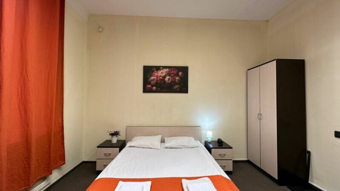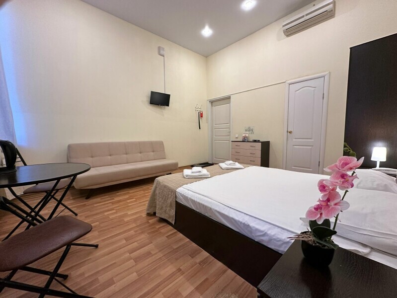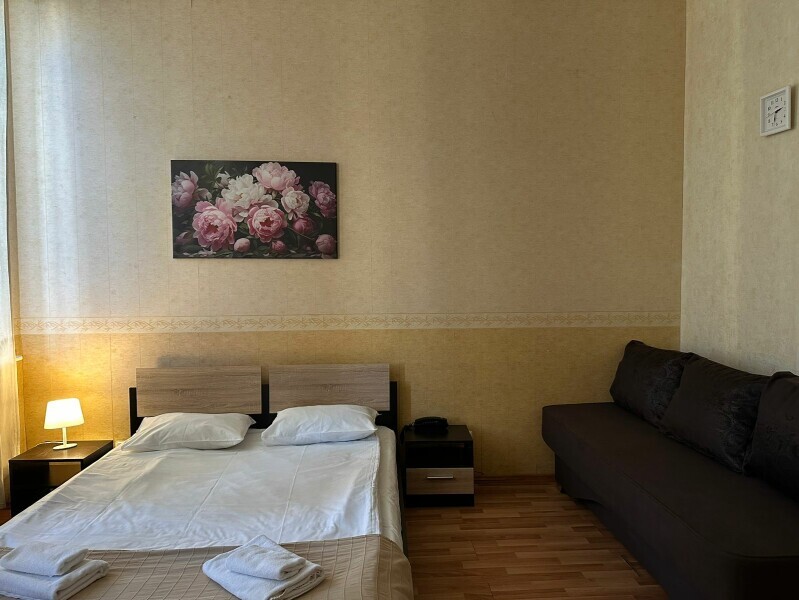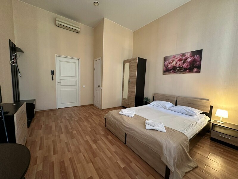Стандартный двухместный номер с двуспальной кроватью, оборудованный всем необходимым для комфортного проживания: кондиционер, ЖК телевизор, собственная ванная комната с душевой кабиной, раковиной и туалетом. Гостям предоставляется постельное белье, полотенца, доступ к интернету. Номер находится на 5 этаже без лифта с удобной широкой лестницей.