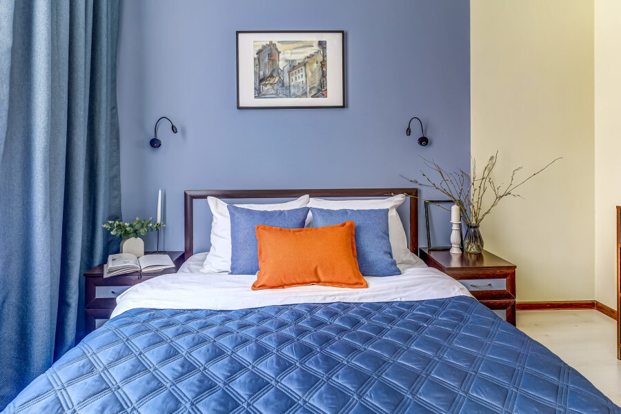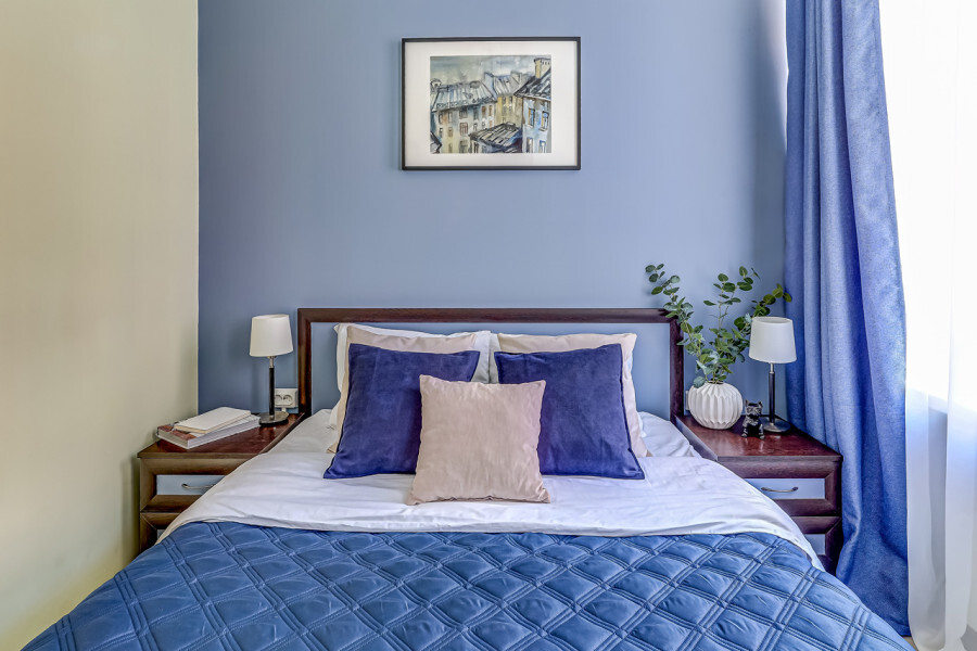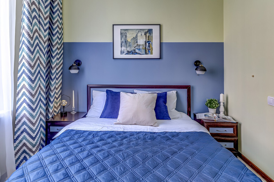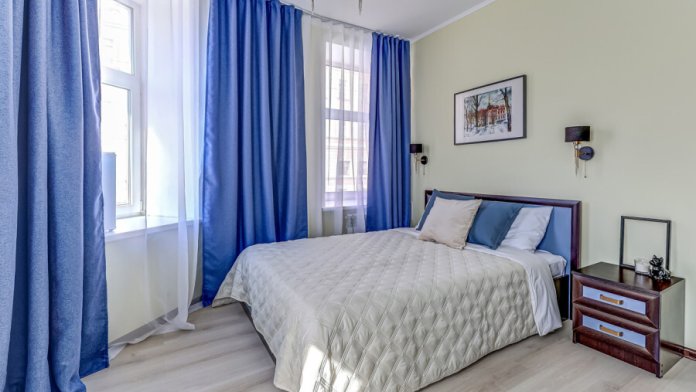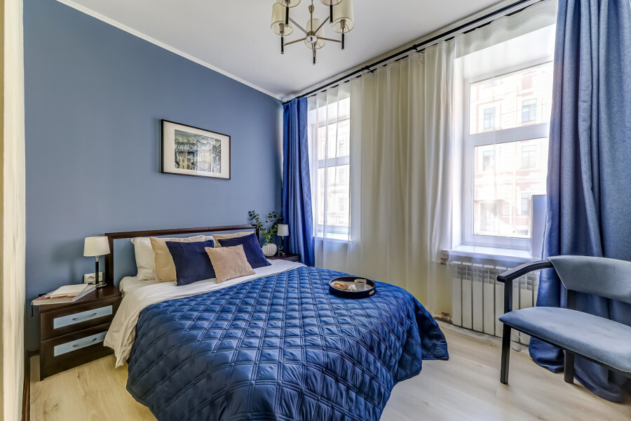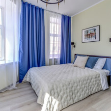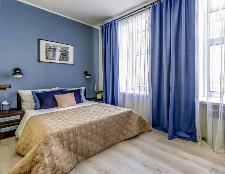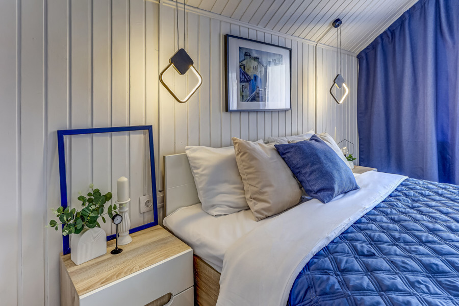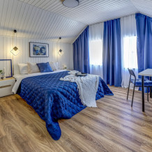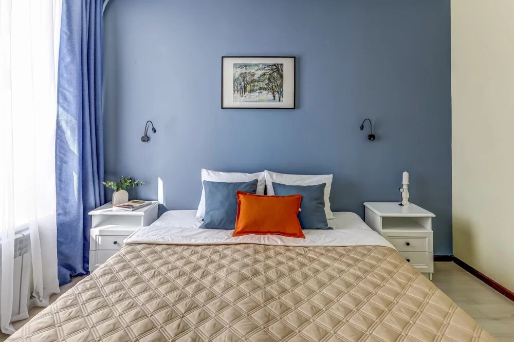 В номере собственный санузел с ванной, ТВ в спальне и гостиной, тумбы с ящиками, шкаф для одежды, плотные шторы, рабочий стол, фен, гладильные принадлежности, кондиционер.