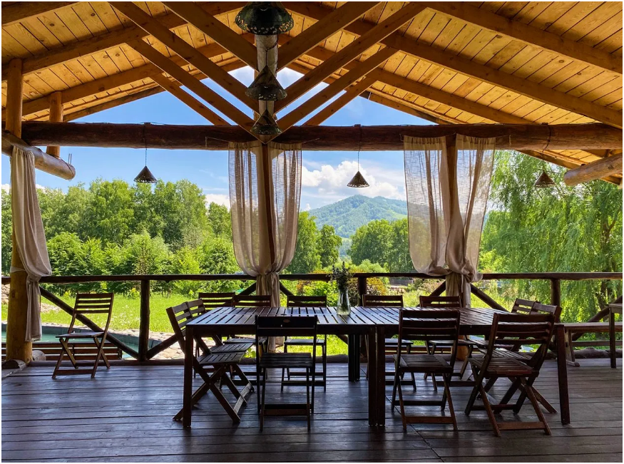 От усадьбы хорошо начинать путешествия по самым популярным и интересным местам. Совсем рядом - крупный современный горнолыжный комплекс «Манжерок». За полчаса можно доехать до центра Горно-Алтайска с великолепным музеем. Еще ближе туристическая зона «Бирюзовая Катунь» с искусственным озером, Тавдинские пещеры, виа-феррата «Зеленый дракон», маральник. Для самых азартных - игорная зона «Сибирская монета». В другую сторону - природный парк и озеро Ая, немного дальше дендропарк семейного отдыха «Холмогорье».