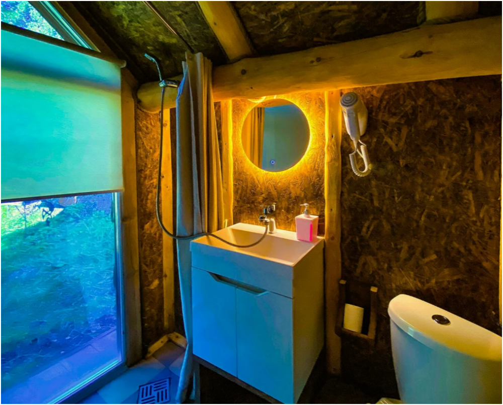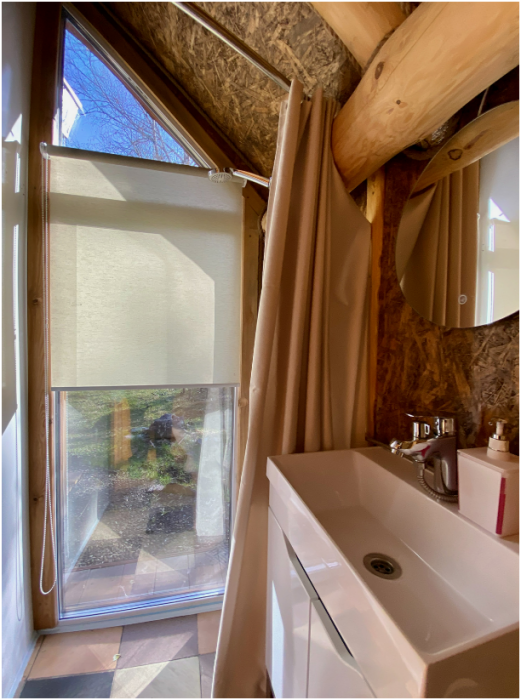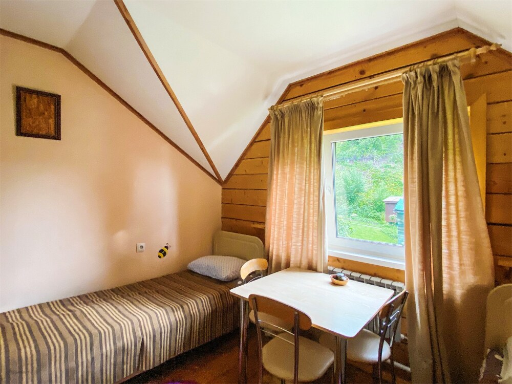 Отдельно стоящий двухэтажный уютный дом с тремя отдельными комнатами, общими санузлом и кухонной зоной на втором этаже, видом на фруктовый сад и пасеку.