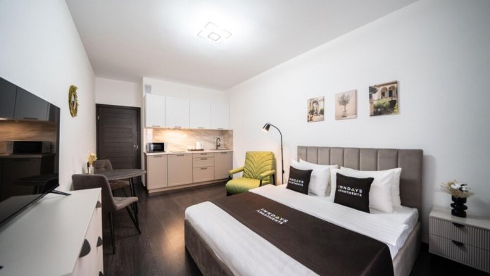 В квартире имеется всё необходимое для Вашего удобства и комфорта. Двуспальная кровать, полностью оборудованная кухня с обеденной зоной, wi-fi и жк-телевизор, белоснежное постельное бельё и махровые полотенца, а также набор банных принадлежностей.