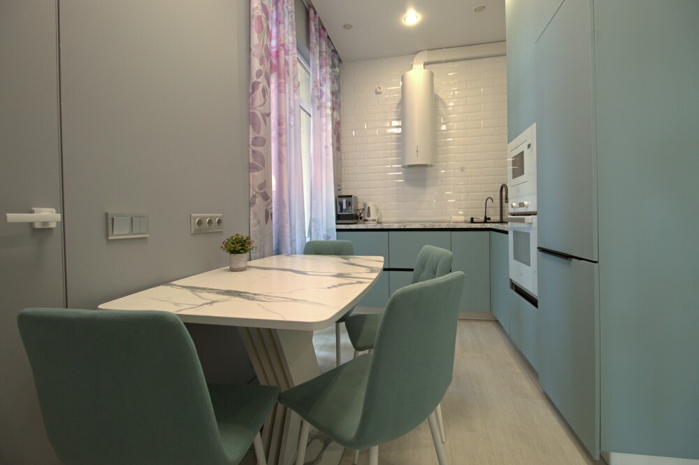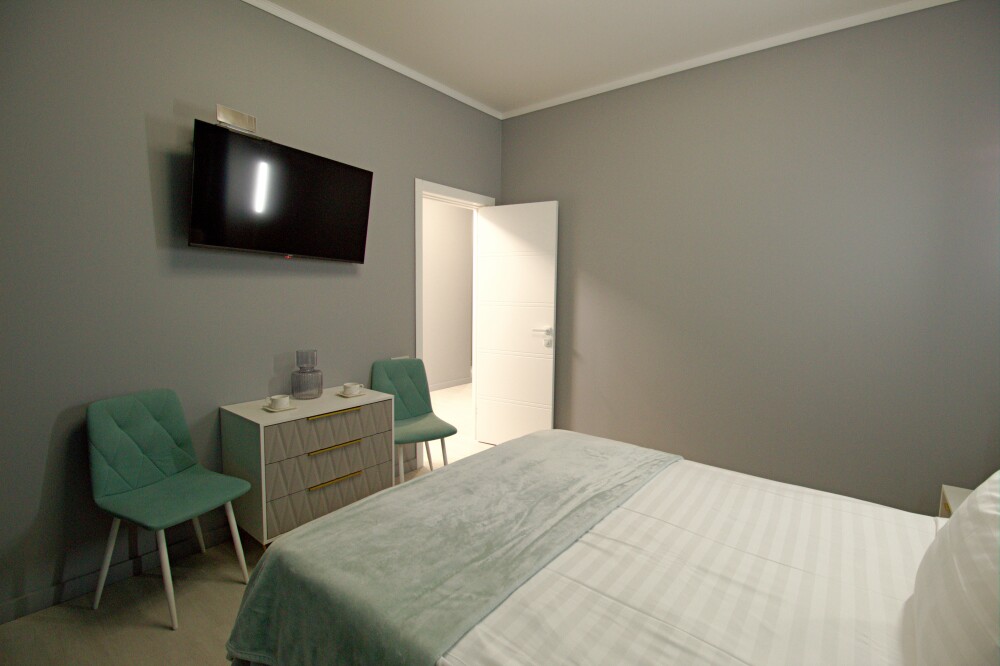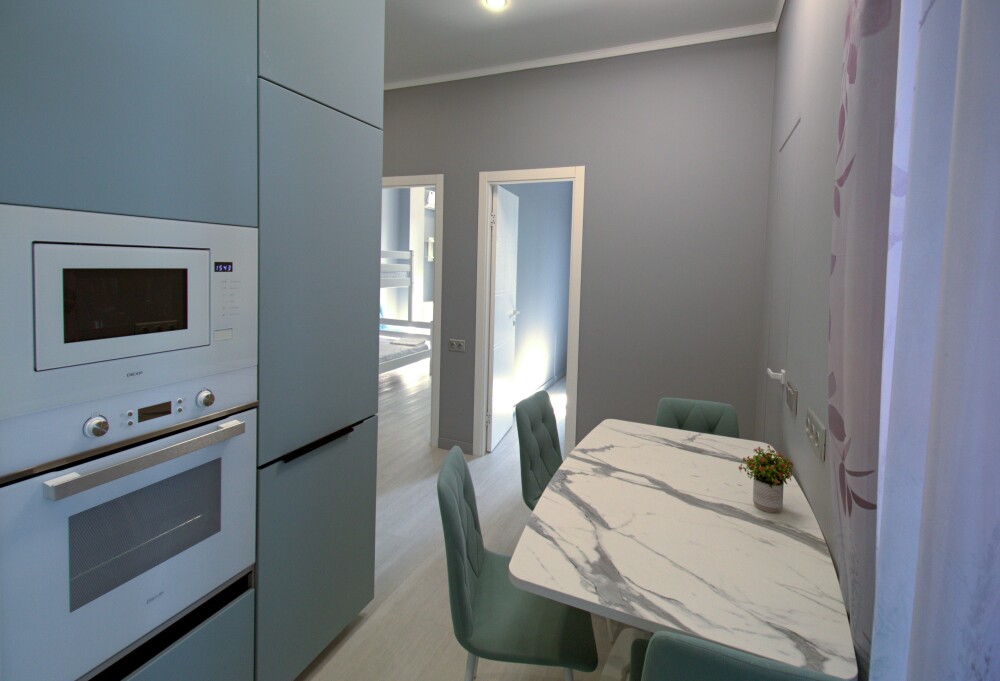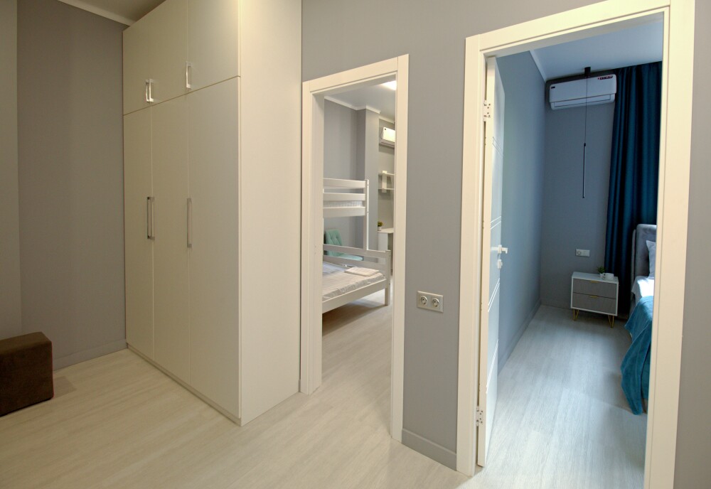 Современная и просторная квартира площадью 55 м² с балконом на 1 этаже, оборудованная для комфортного проживания до 6 гостей. Имеются 2 кровати размером 160х200, второй ярус 90х200, 1 диван размером 160х200.