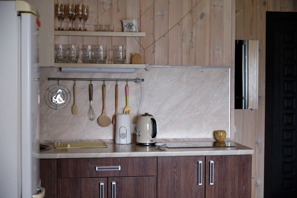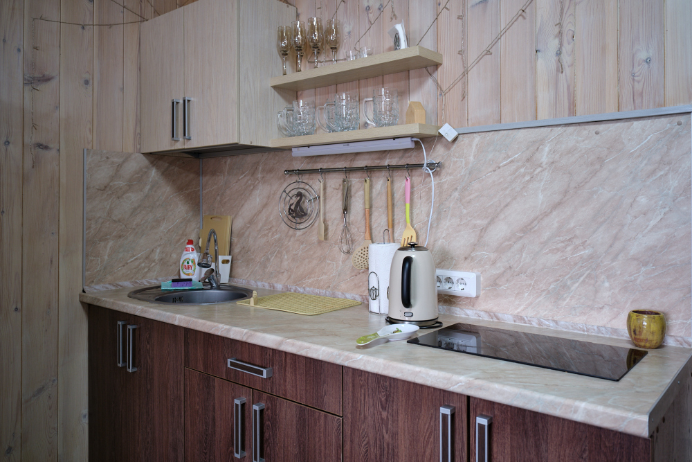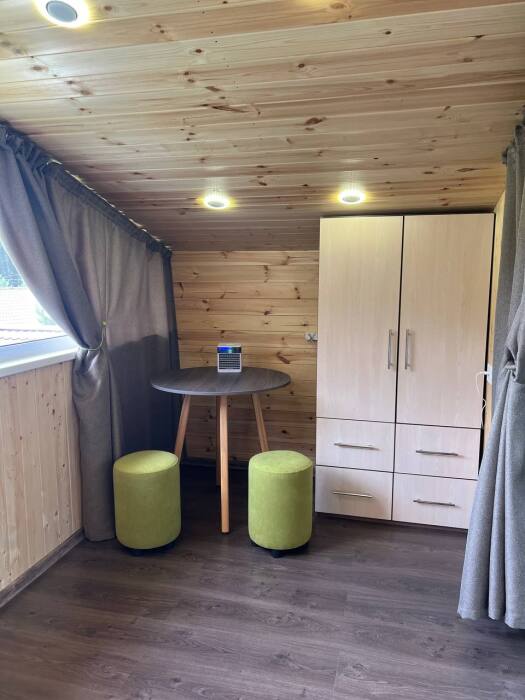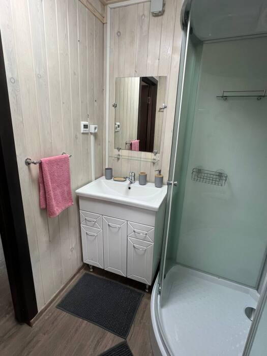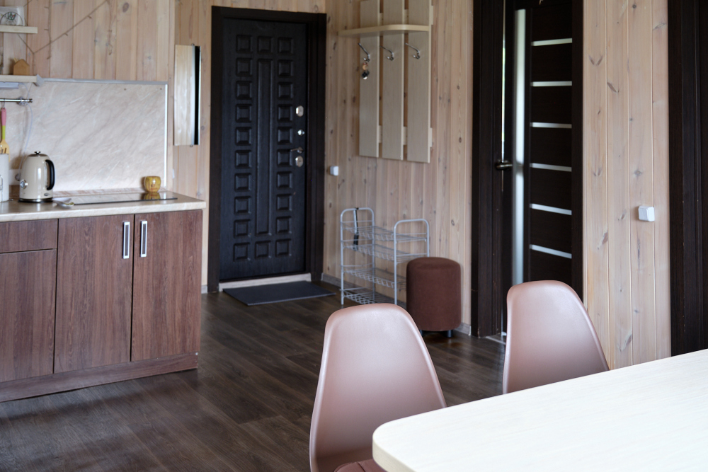 На территории есть два благоустроенных всесезонных дома на 6 человек (в один этаж) и 8 человек (в два этажа). В домах есть кухня, санузел, все необходимое для комфортного проживания (стиральная машина, утюг, сушилка для вещей, гладильная доска).
