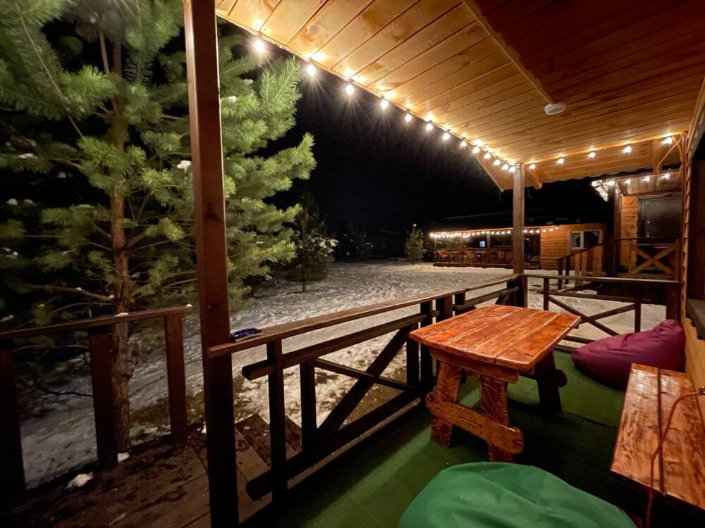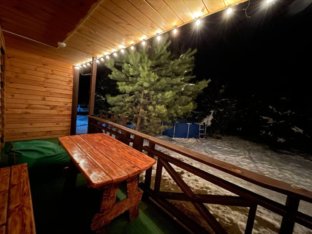 Для детей имеется детская площадка (песочница, батут, детская стенка-лазелка, бассейн, мячи, бадминтон, теннисный стол). К услугам гостей баня на дровах с комнатой отдыха. Парковка под видеонаблюдением, Wi-Fi, трансфер.