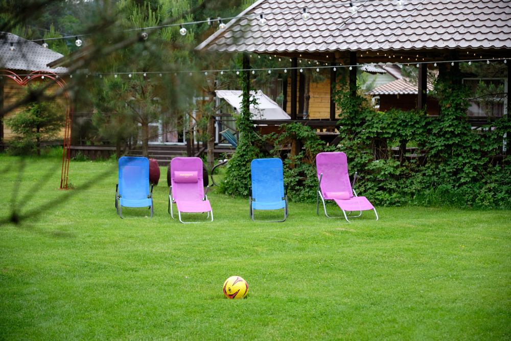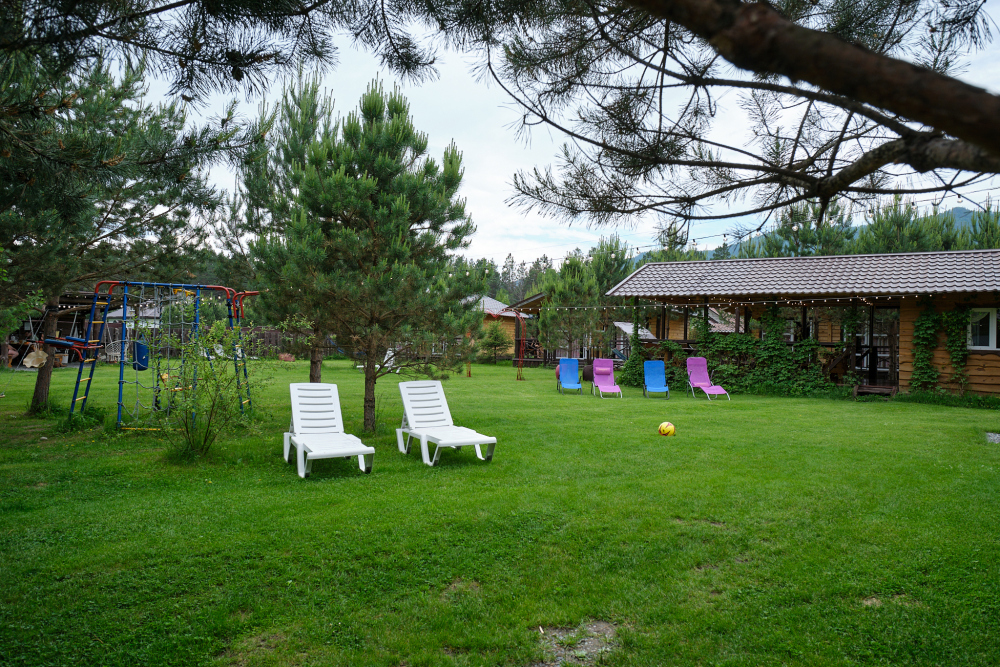 С видом на горы в дали от шума и трассы.