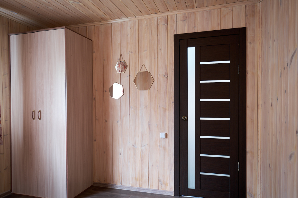 Три спальни на втором этаже, в каждой комнате двуспальная кровать, шкаф для одежды.