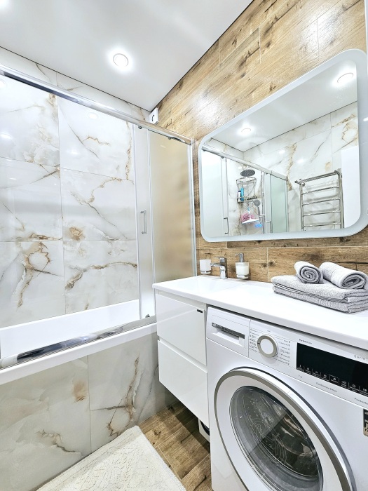 Стильная, просторная двухкомнатная квартира. Интерьер продуман до мелочей, чтобы вам было максимально комфортно на отдыхе или во время длительного проживания.