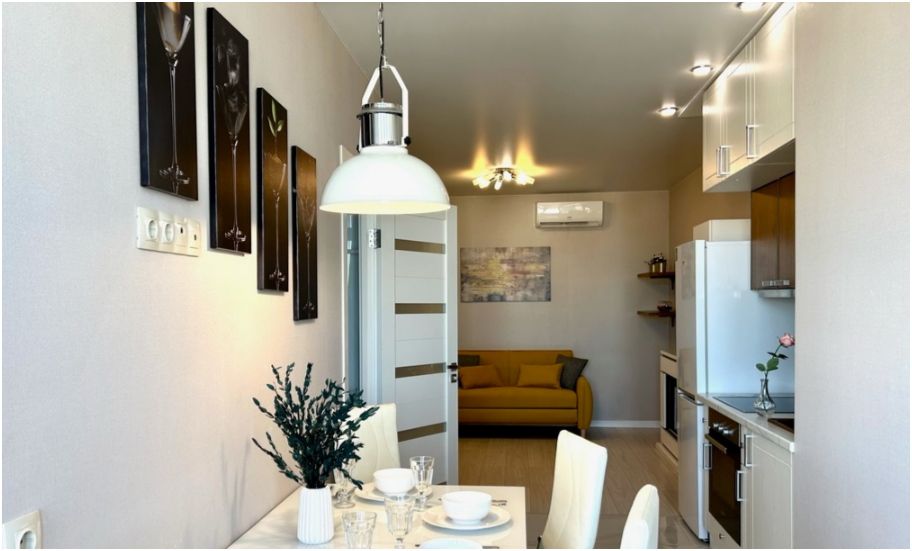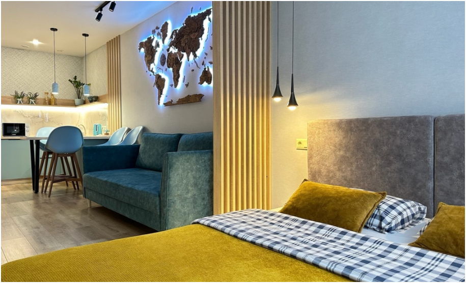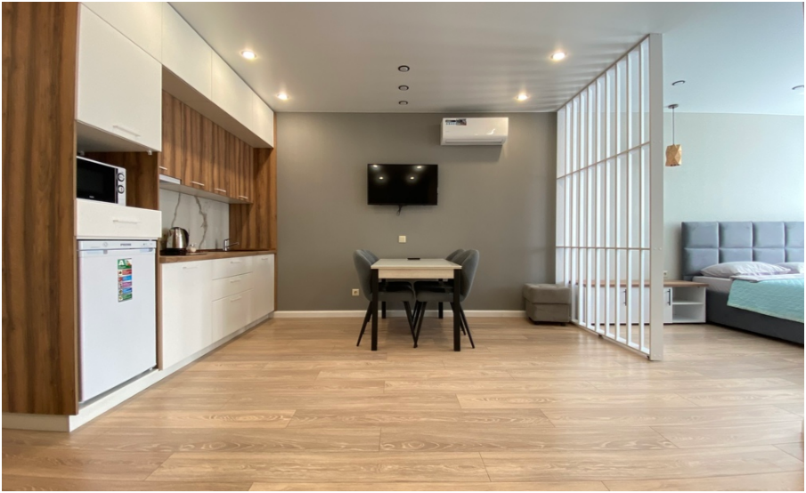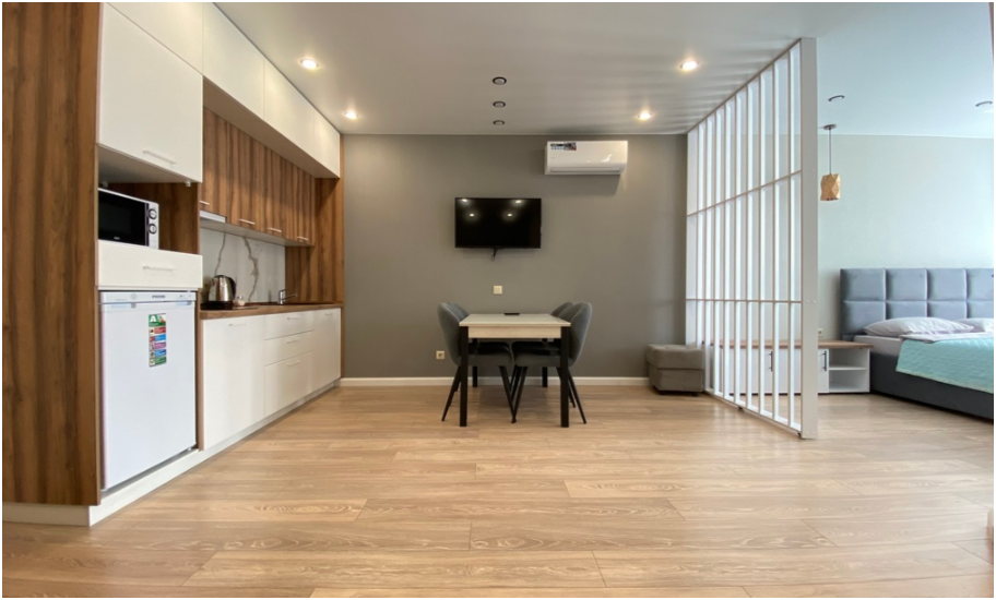 Выбирая наши апартаменты, Вы обеспечиваете себе высокий и качественный уровень комфорта. Мы стремимся создать идеальную атмосферу для Вашего проживания, где каждая деталь заботливо продумана. Наши апартаменты предлагают стильные и уютные интерьеры, оборудованные всем необходимым для Вашего размещения.