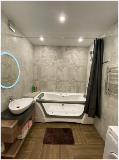 Комфортное размещение до 4 человек, 2+2: удобная двухспальная кровать с ортопедическим матрасом в отдельной спальне, двухместный диван-кровать в гостиной- оборудованная кухня с посудомоечной машиной, домашний кинотеатр и камин в гостиной, романтичное джакузи с подсветкой и радиомузыкой, телевизор в ванной комнате.