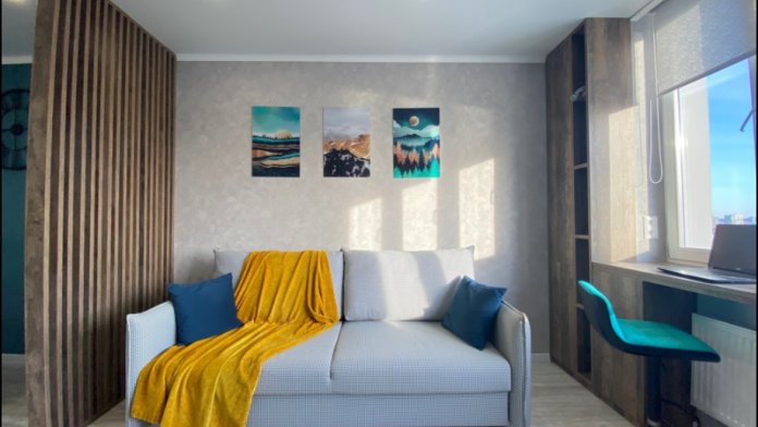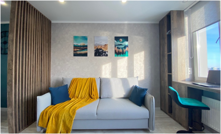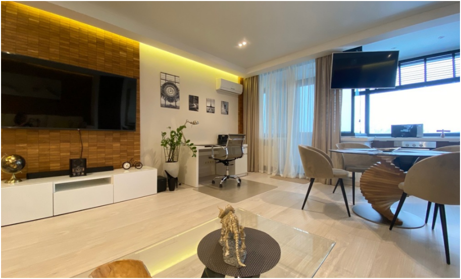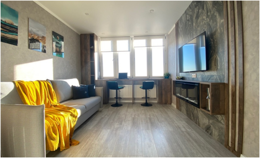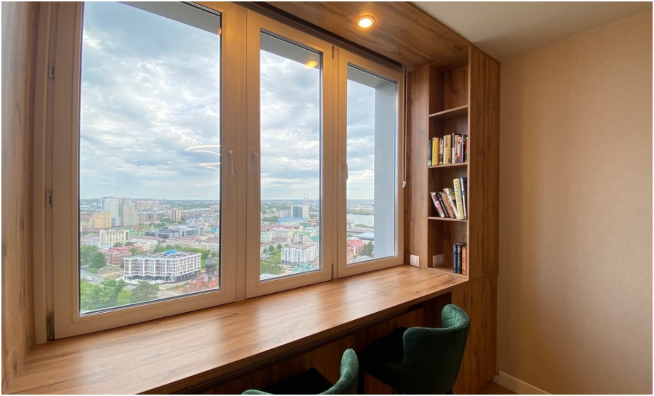 Двухкомнатные дизайнерские апартаменты. С рабочего места у окна открывается вдохновляющий вид на центр Казани и озеро Кабан.