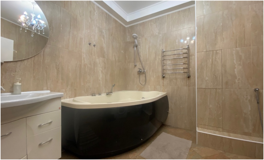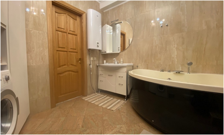 Стильная, просторная бизнес-студия. Удобная рабочая зона с офисным креслом и письменными принадлежностями, оборудованная кухня с посудомоечной машиной, дизайнерский обеденный стол. Комфортная зона отдыха с домашним кинотеатром на два телевизора. Уютный балкон. Расслабляющее джакузи, вместительная гардеробная и зеркала, зеркала. Комфортное размещение до 2 человек:-двухместный диван-кровать в гостиной.