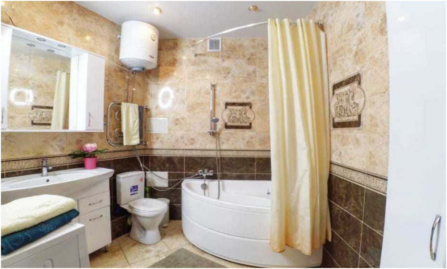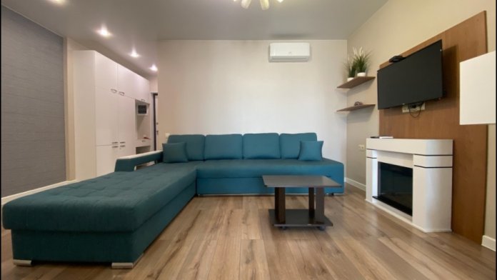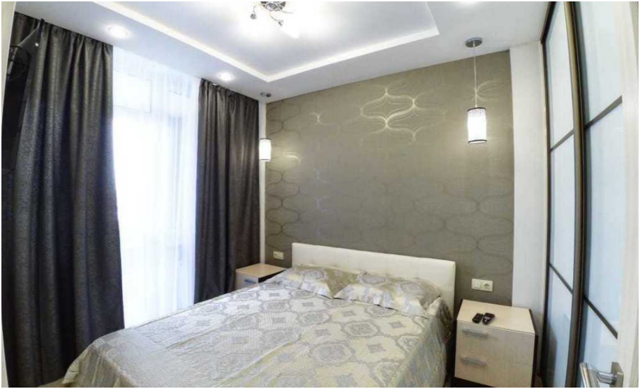 В квартире 4 спальных места (двуспальная кровать 1.60х2.00 и диван-кровать). В номере есть спальня с телевизором и выходом на балкон, современная оборудованная кухня-студия, совмещенный санузел с душевой и бесплатными туалетными принадлежностями. В гостиной большой телевизор со спутниковыми каналами и кондиционер. В спальне имеется телевизор и выход на балкон. На кухне электрическая варочная поверхность, холодильник, электрический чайник, микроволновая печь. Бесплатный Wi Fi.