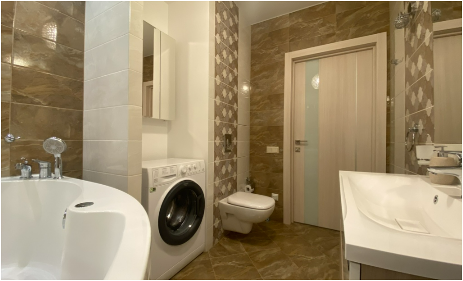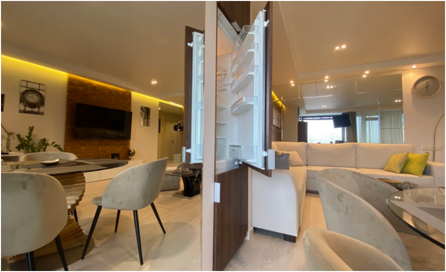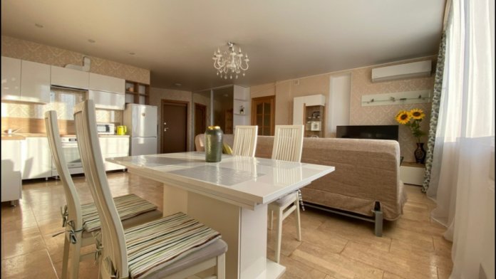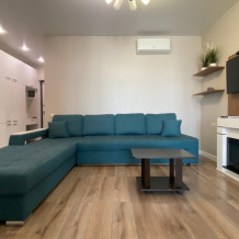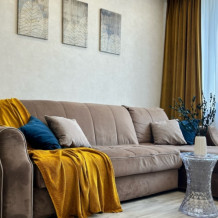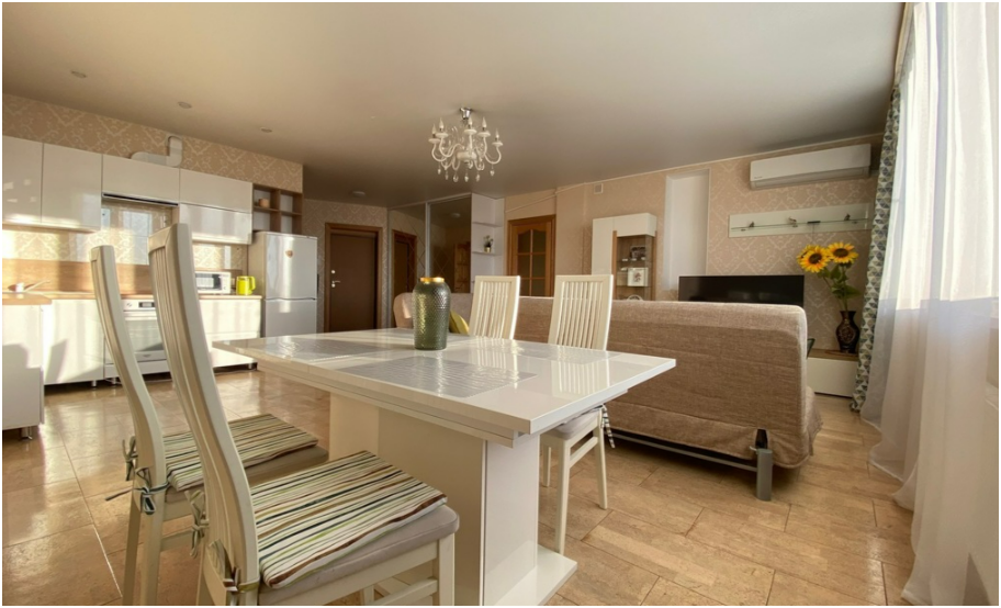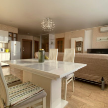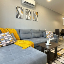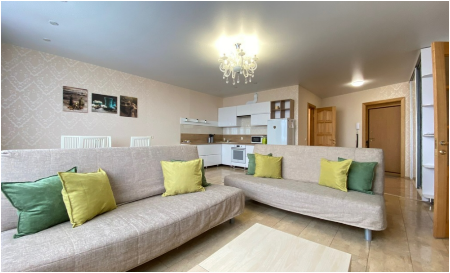 Комфортное размещение до 6 человек, 2+2+1+1: удобная двухспальная кровать с ортопедическим матрасом в отдельной спальне, двухместный диван-кровать в гостиной, два одноместных дивана-кровати, оборудованная стильная кухня, стильная ванная комната.