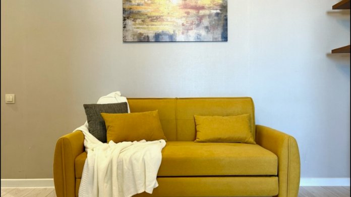 Комфортное размещение до 6 человек, 2+2+2: двухспальная кровать в гостиной, двухместный диван-кровать в гостиной, двухместный диван-кровать в выделенной зоне.